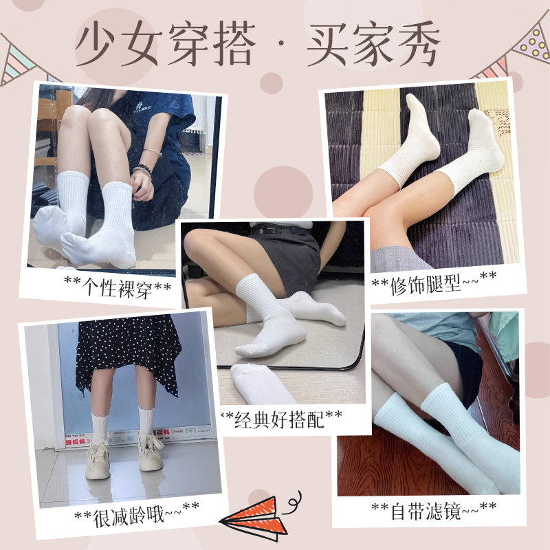 白色袜子女中筒袜夏季薄款纯棉无骨抗菌堆堆袜轻运动配瑜伽裤长袜