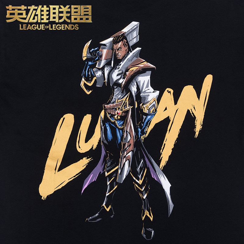 英雄联盟LOL 圣枪游侠 卢锡安黑色圆领短袖T恤男女同款