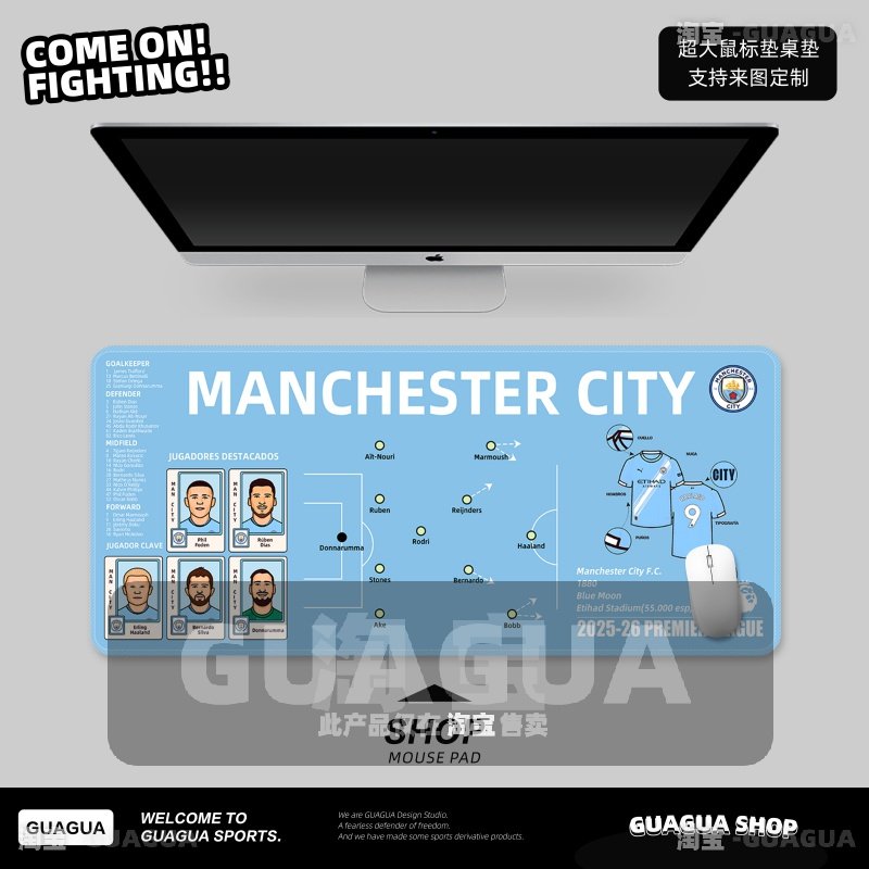 五大联赛曼城哈兰德德布劳内福登鼠标垫电脑桌垫游戏垫键盘垫桌垫
