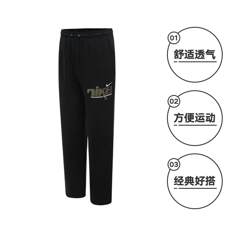 【自营】NIKE耐克运动长裤男裤子加绒直筒卫裤黑白 IM8324-010