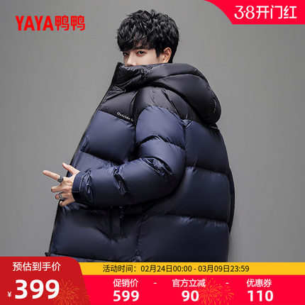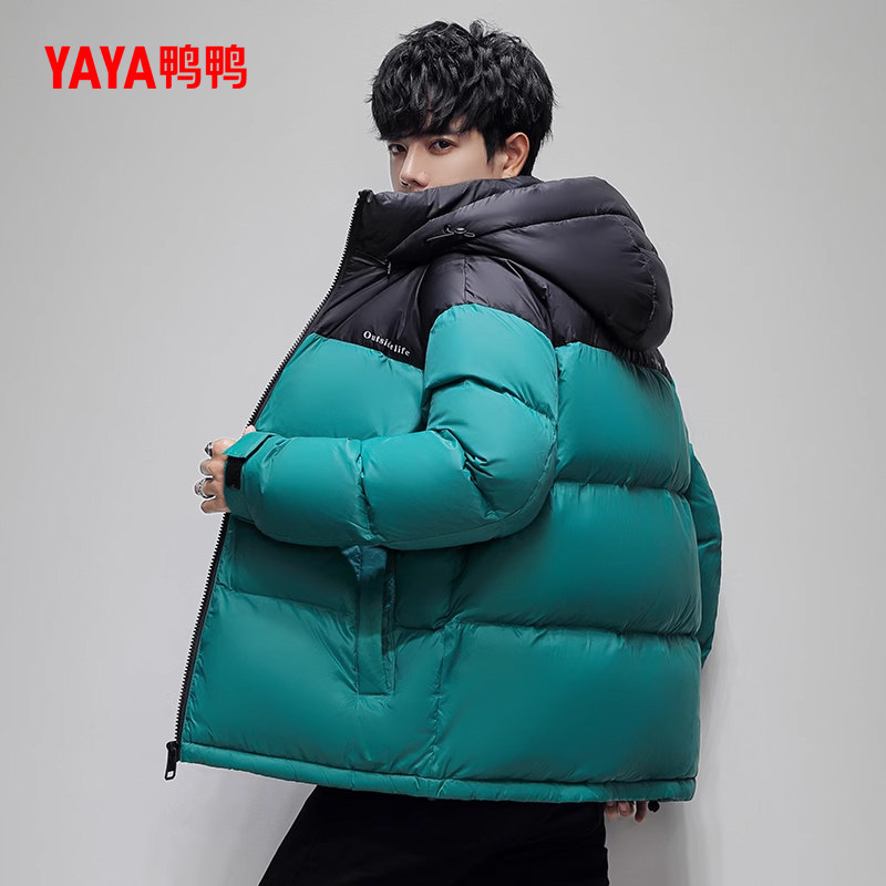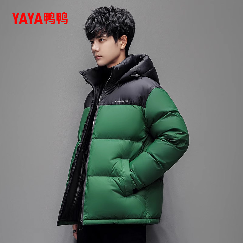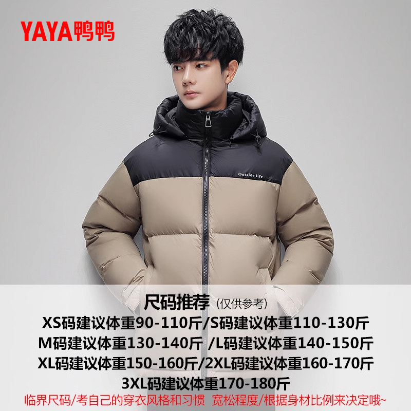 鸭鸭羽绒服男士2025冬季新款连帽短款时尚潮流拼色加厚保暖外套L