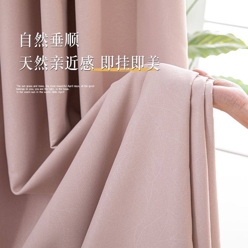 遮光隔热窗帘遮阳布浅粉压花高级感轻奢简约卧室阳台打孔挂钩全25