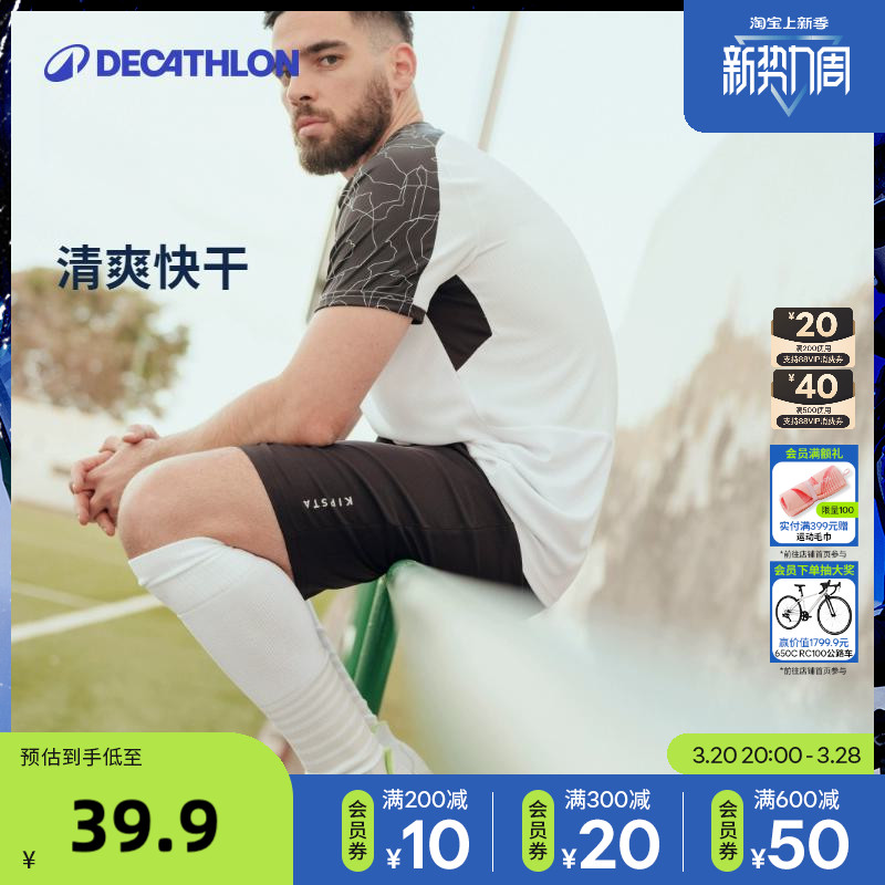 迪卡侬足球短袖球衣t恤男士吸汗透气宽松半袖跑步运动足球服IVO2