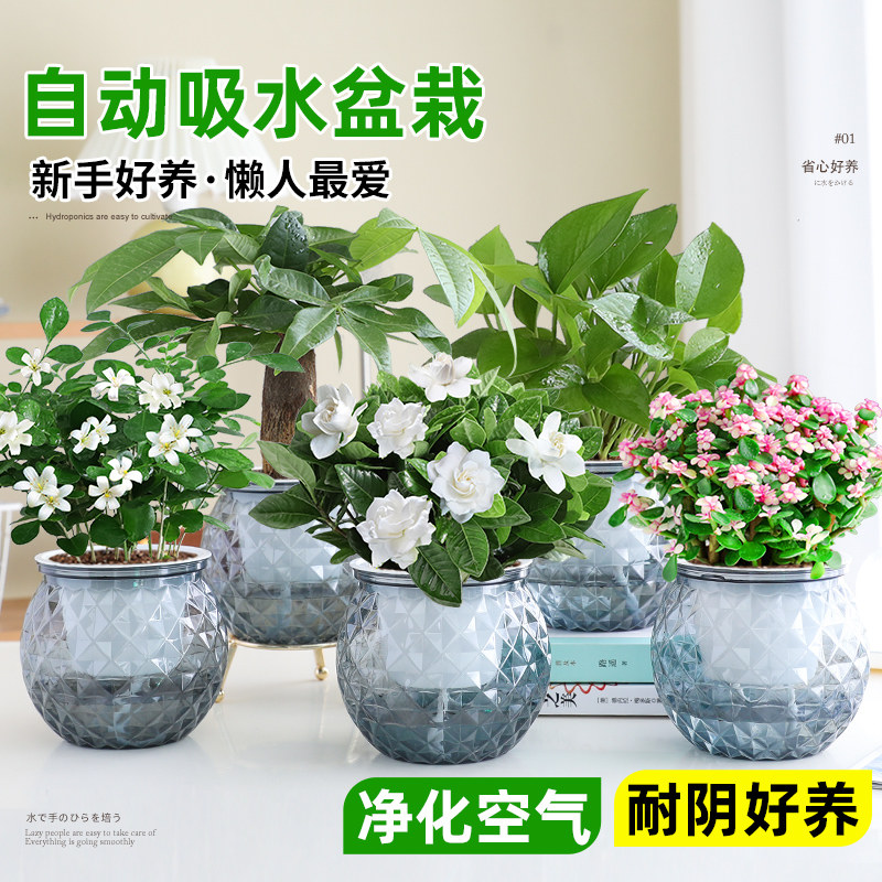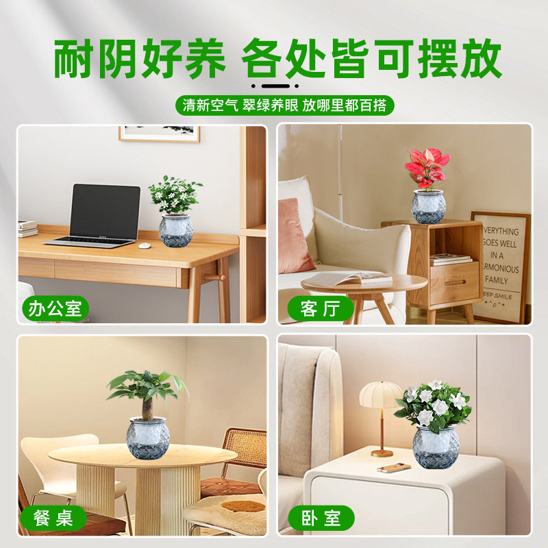 桌面盆栽栀子花绿萝箩发财树绿植办公室花卉水培多肉植物好养易活