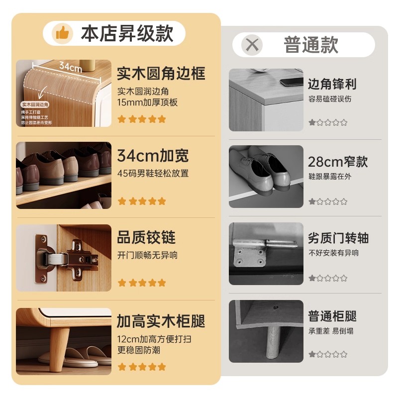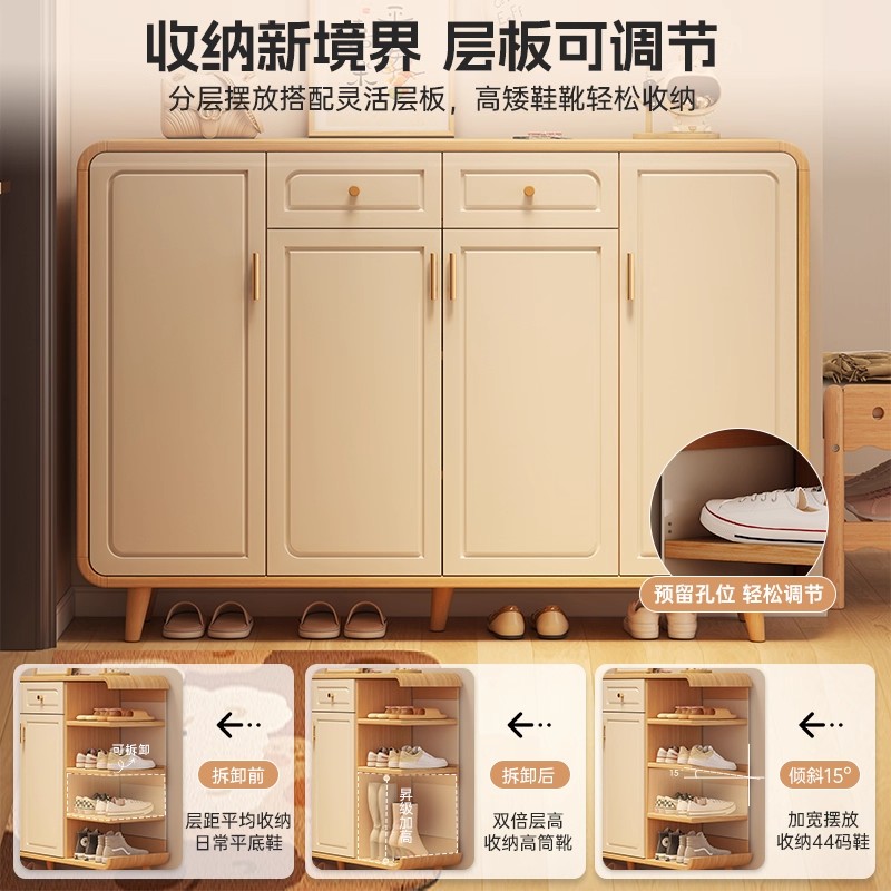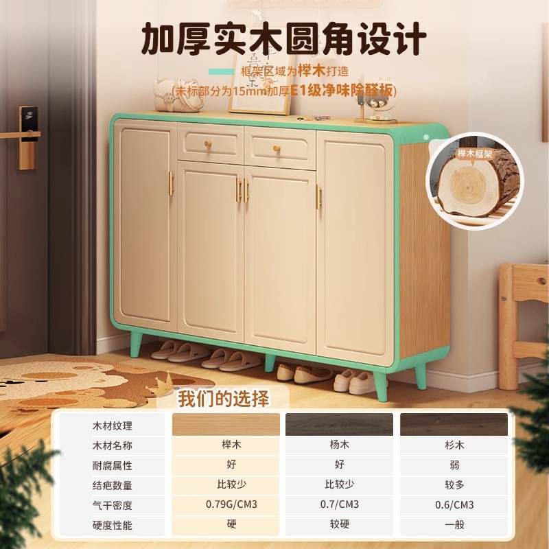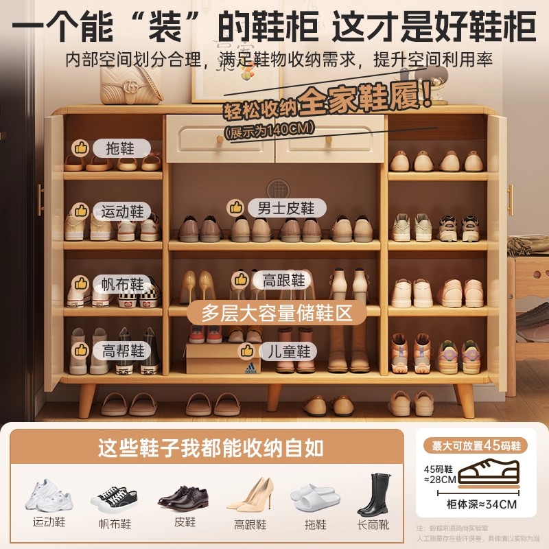 实木圆角入户鞋柜家用门口新款室内大容量多层储物玄关柜收纳鞋架