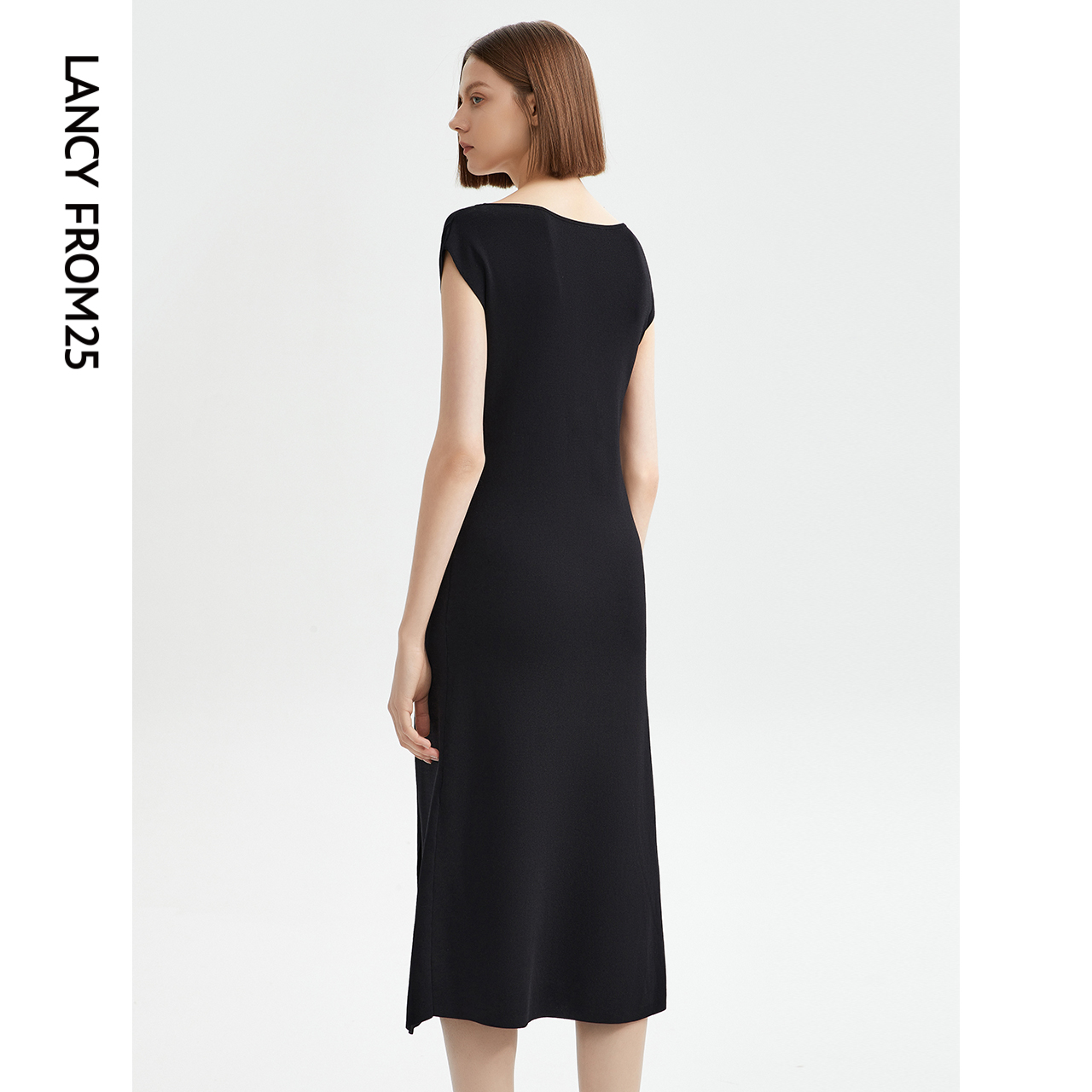 朗姿法式一字领赫本风小黑裙夏季新款长裙子女显瘦通勤针织连衣裙
