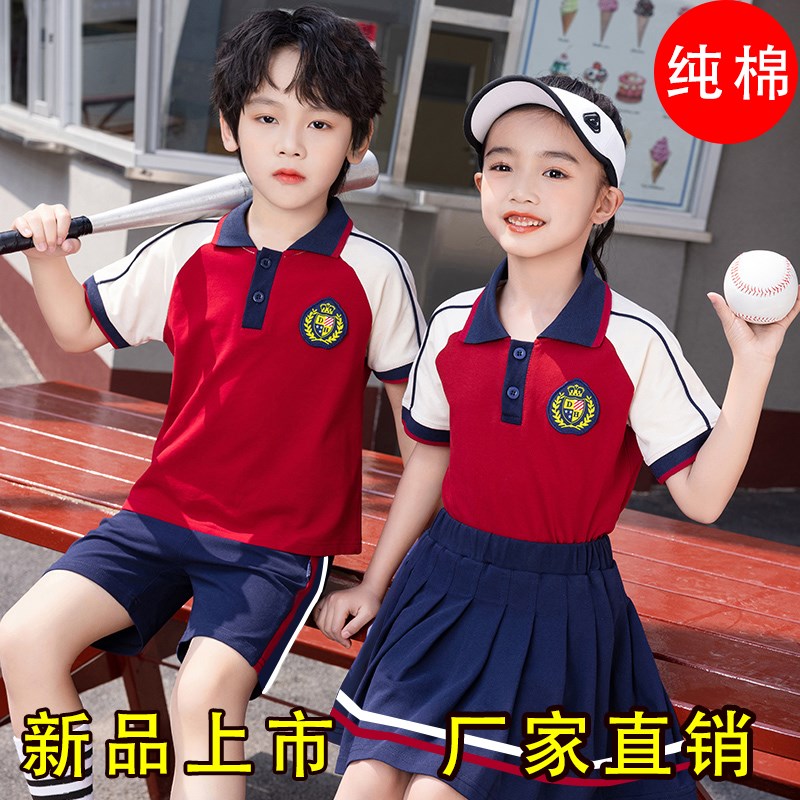 2024新款夏季幼儿园服班六一演出服小学生纯棉短袖套装英伦学院风