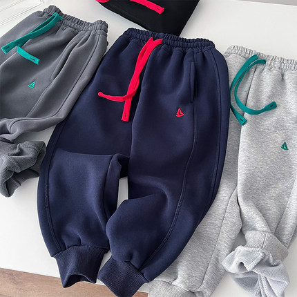 男童保暖一体绒卫裤中大童加绒裤子收口运动裤儿童休闲百搭厚长裤