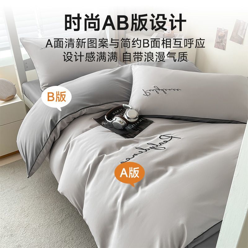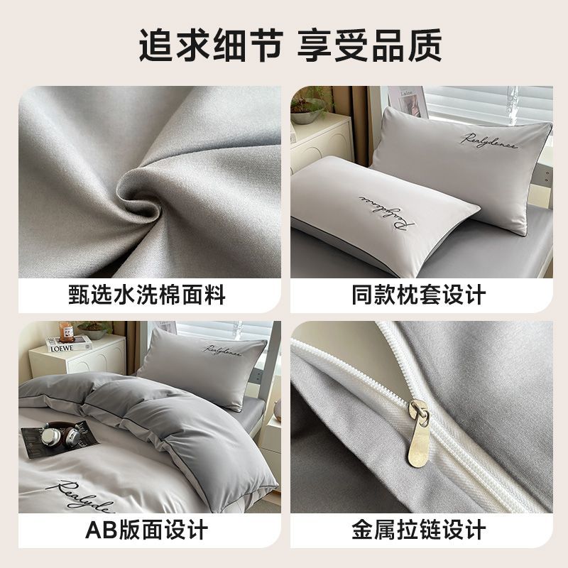 ABS轻奢高级感水洗棉三件套学生宿舍被套床单床笠床品四季通用