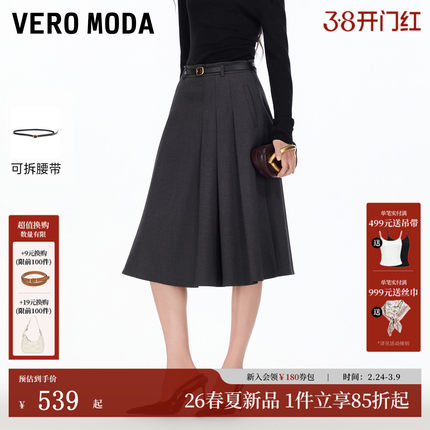 Vero Moda半身裙女2026春季新款可拆卸腰带口袋百褶裙326116006