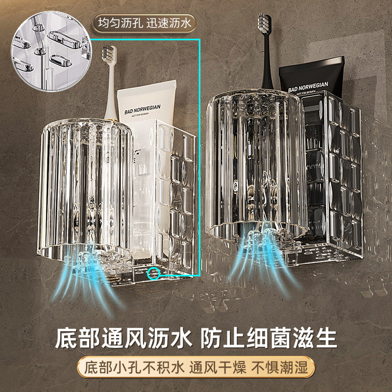 轻奢牙刷置物架卫生间家用漱口杯免打孔牙刷杯情侣壁挂式杯子套装