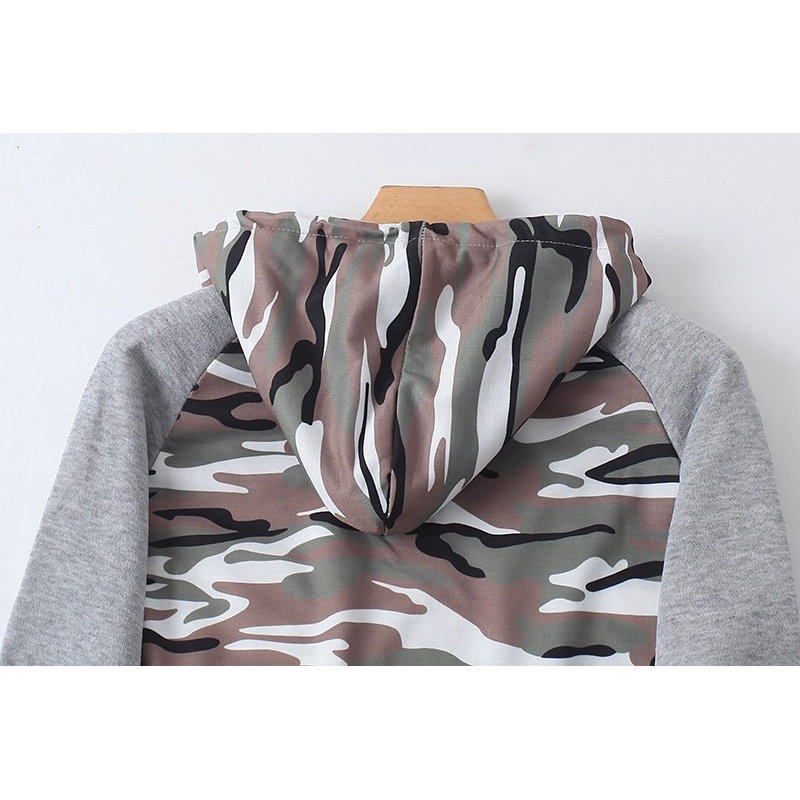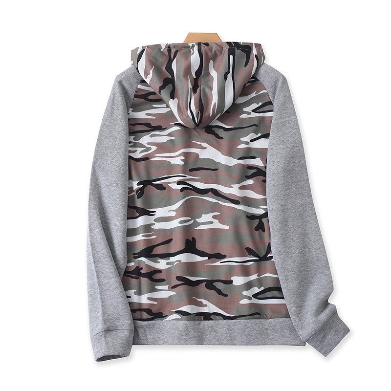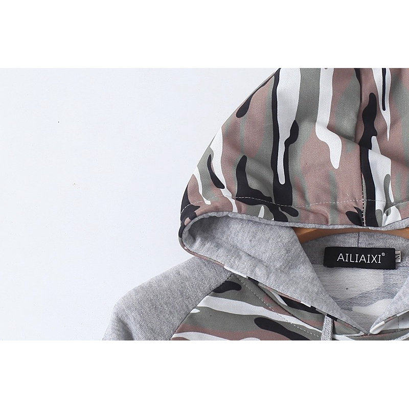 外贸连帽加绒拼色卫衣 秋冬长袖套头外套 迷彩时尚男女上衣 08383
