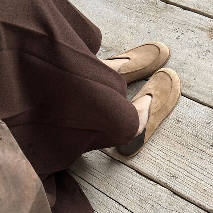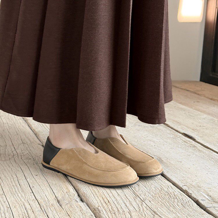 奶奶鞋2026春季新款欧洲站女鞋圆头平底橡胶胶粘工艺羊皮深口单鞋