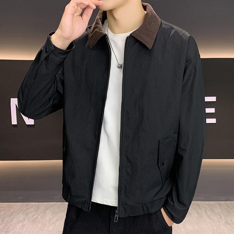 秋冬夹克外套男2025新款男外套时尚帅气翻领拼色休闲上衣1006r