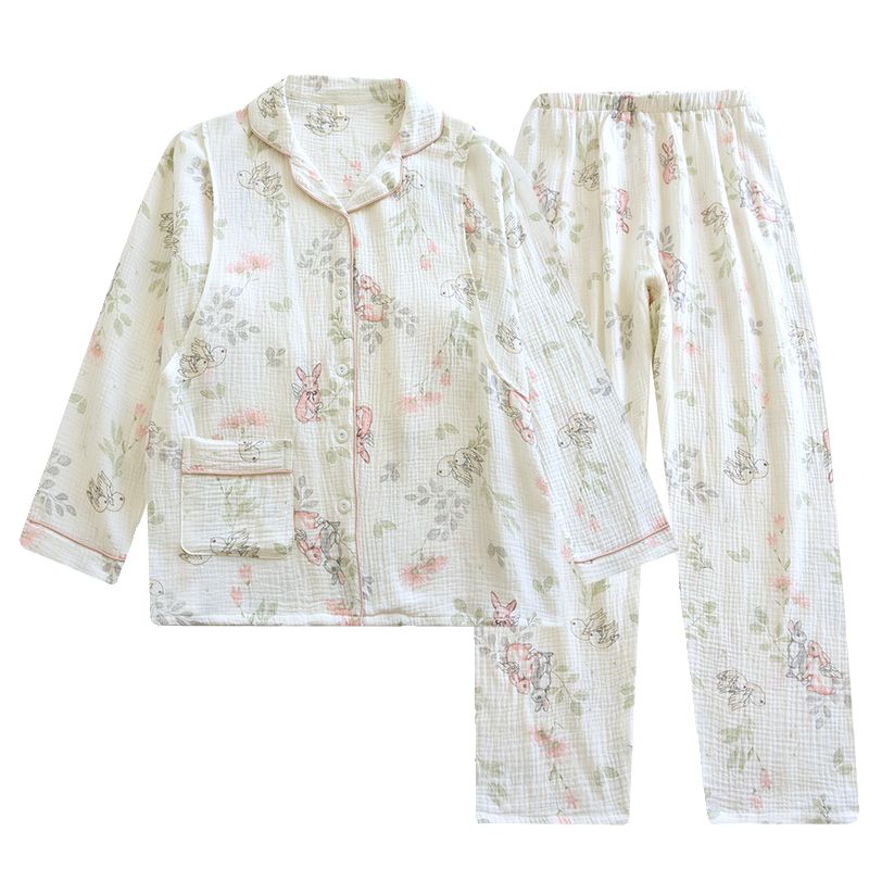 春夏纯棉月子服带胸垫哺乳衣全棉纱布产后薄款孕妇睡衣产妇家居服