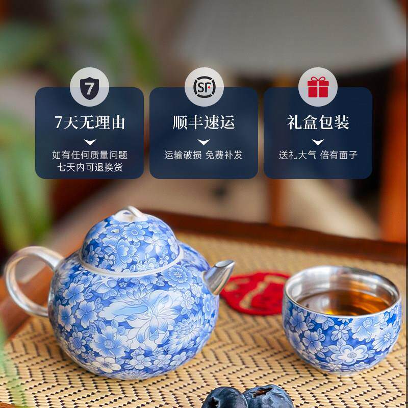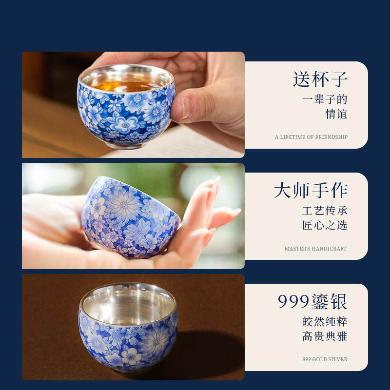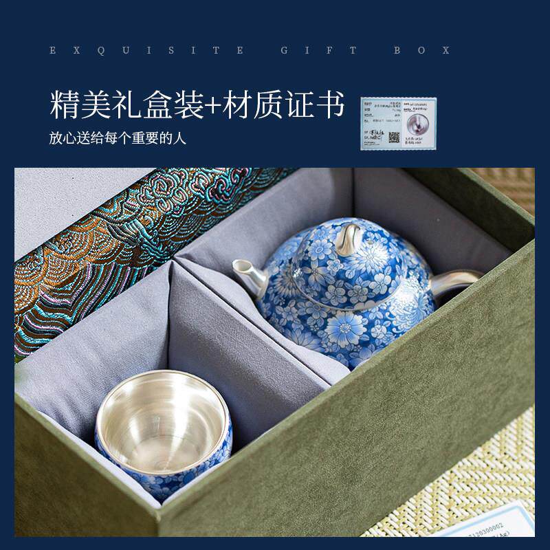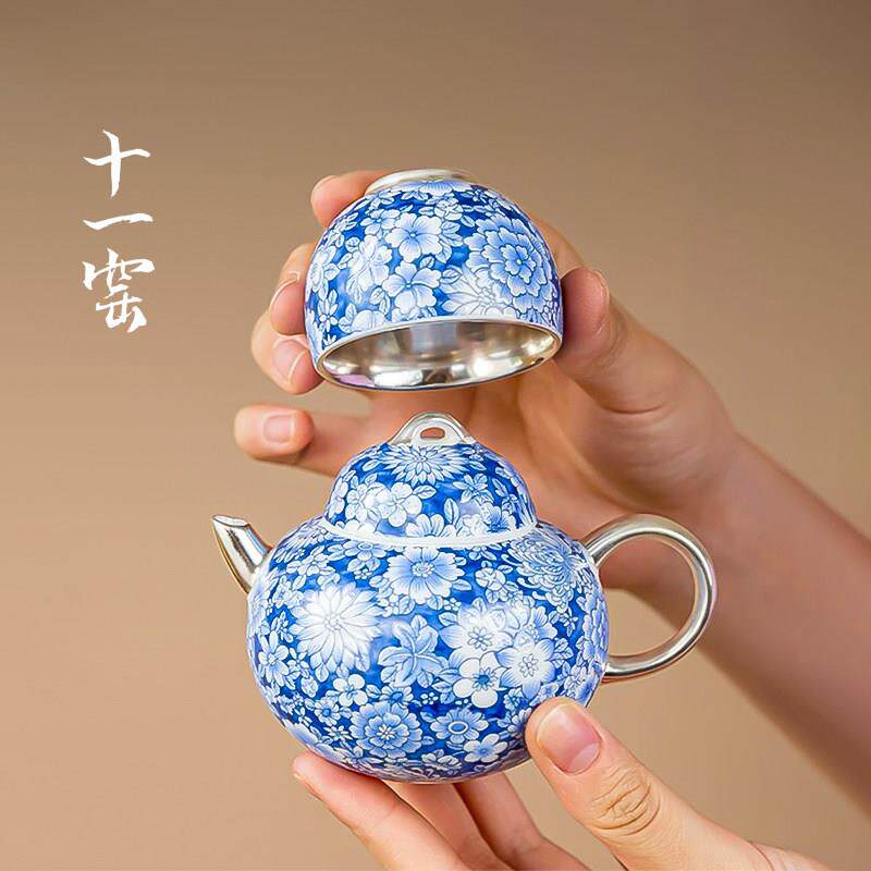 十一窑青花优瓷系列鎏银功夫茶具家用轻奢陶瓷茶壶茶杯礼盒套组
