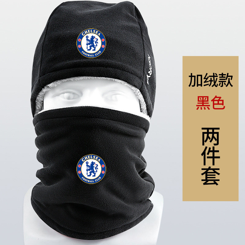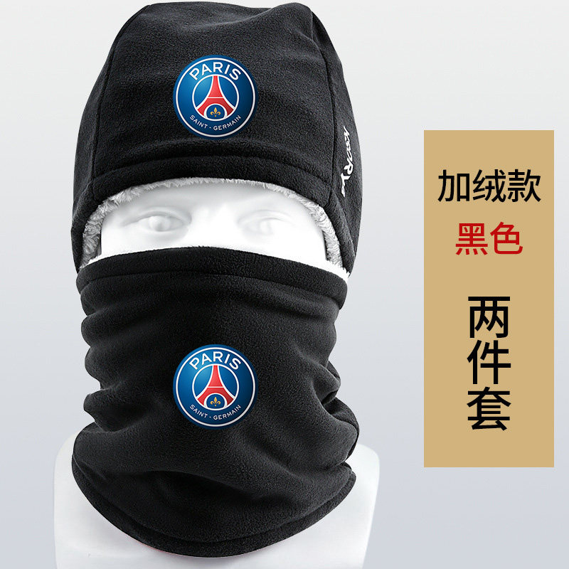 欧冠皇马巴萨曼联曼城巴黎冬防风围脖帽骑行保暖男两件套加绒加厚