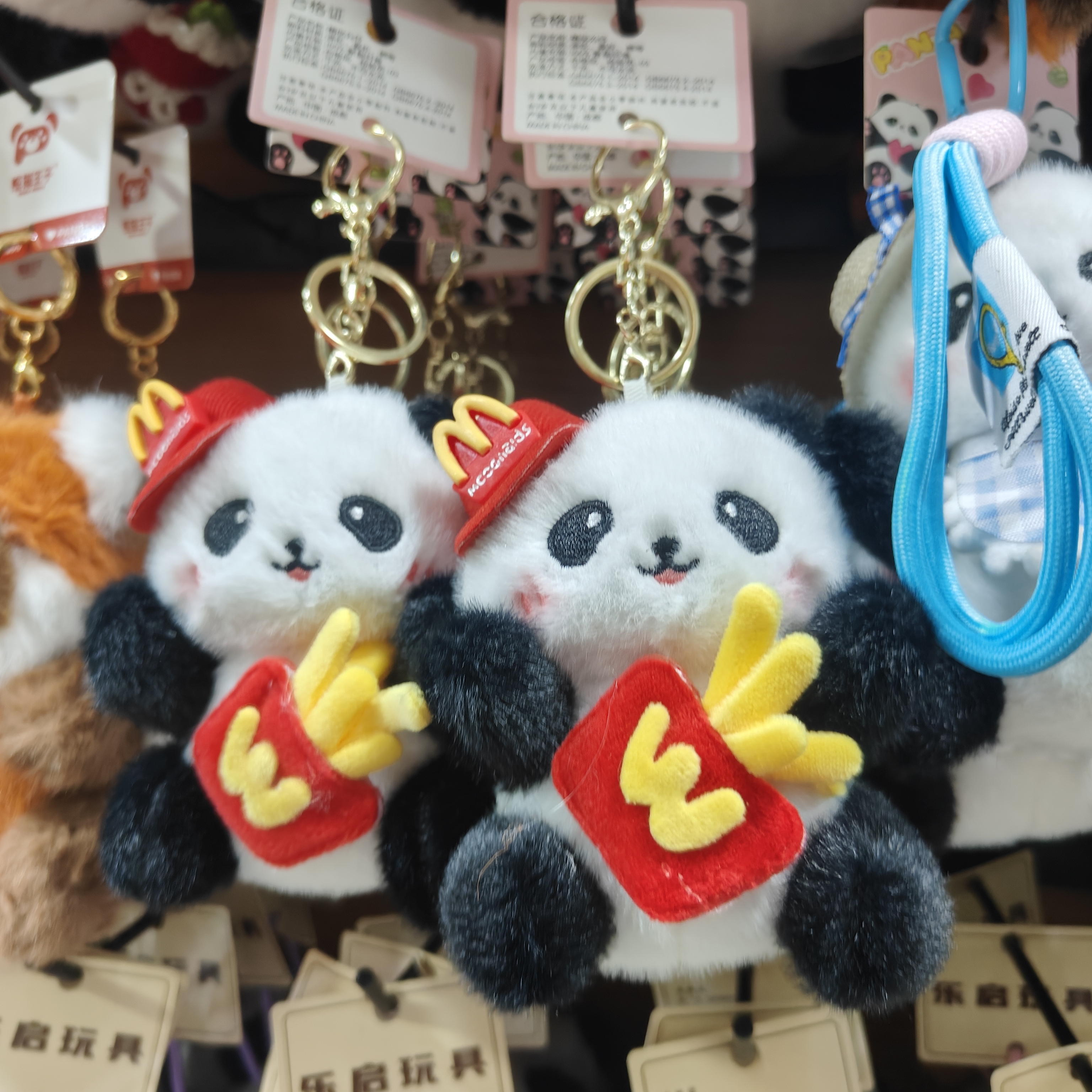 熊猫基地熊猫公仔花花蜜蜂蝴蝶结熊猫毛绒玩具布娃娃水貂毛挂件