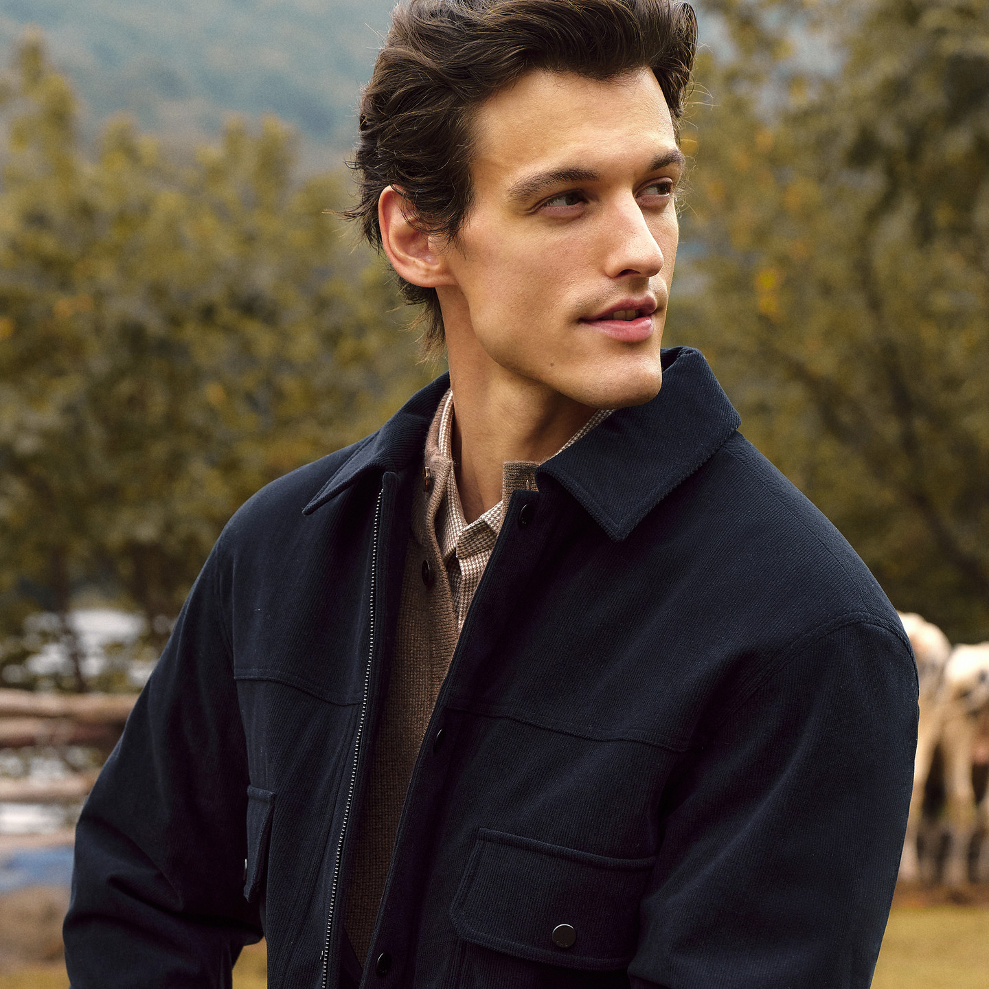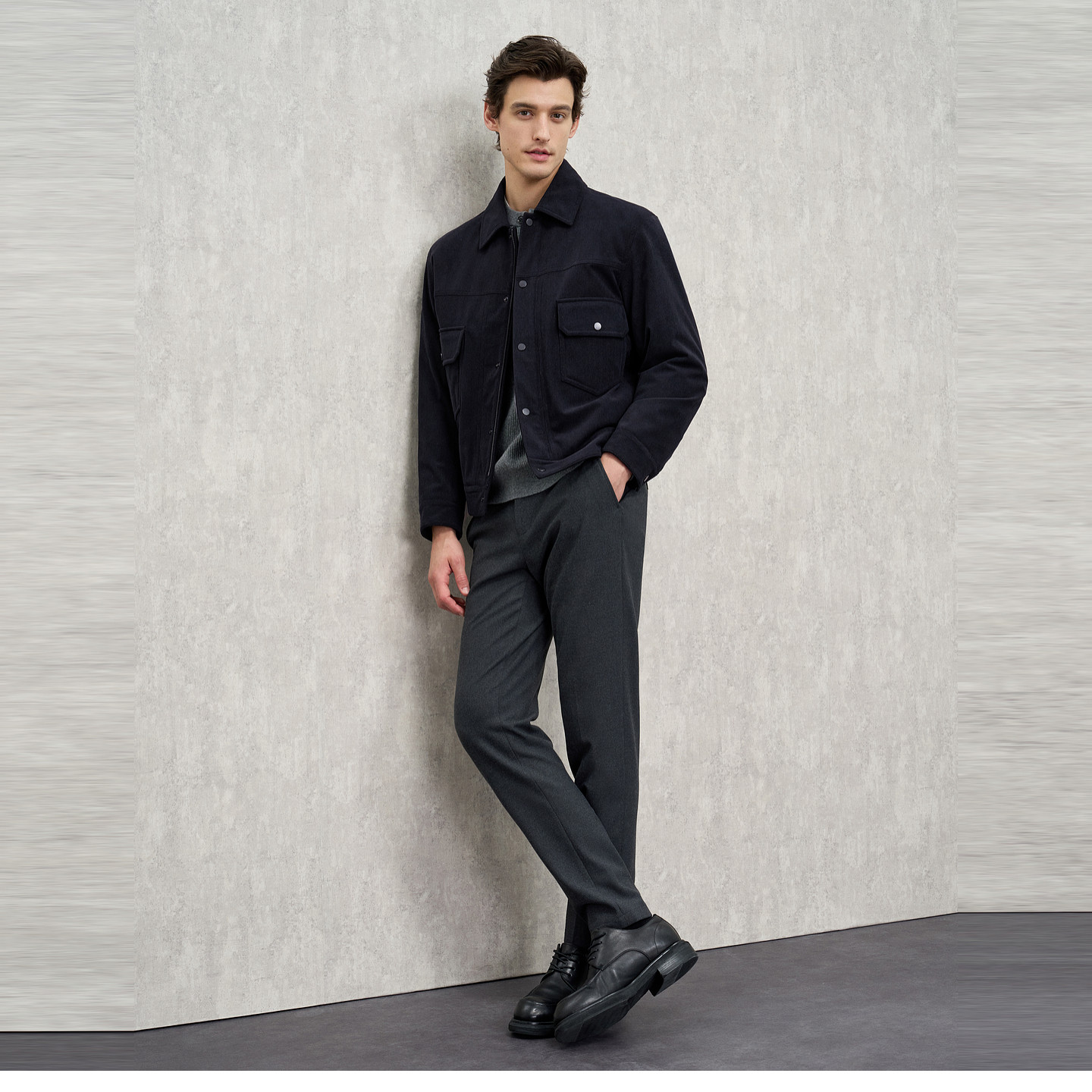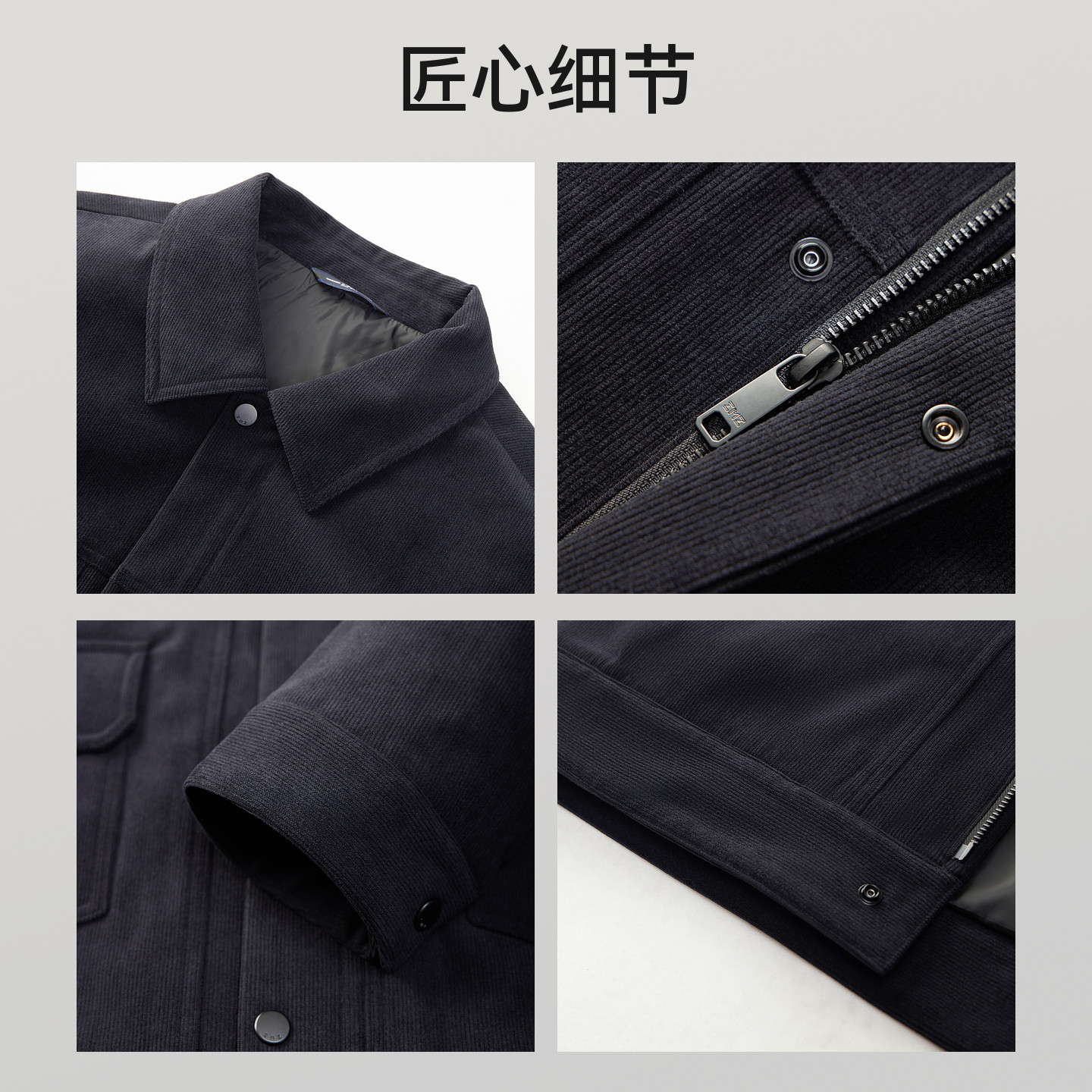 【白鹅绒】EMZ鄂尔多斯秋冬新款休闲保暖灯芯绒薄款羽绒服外套男