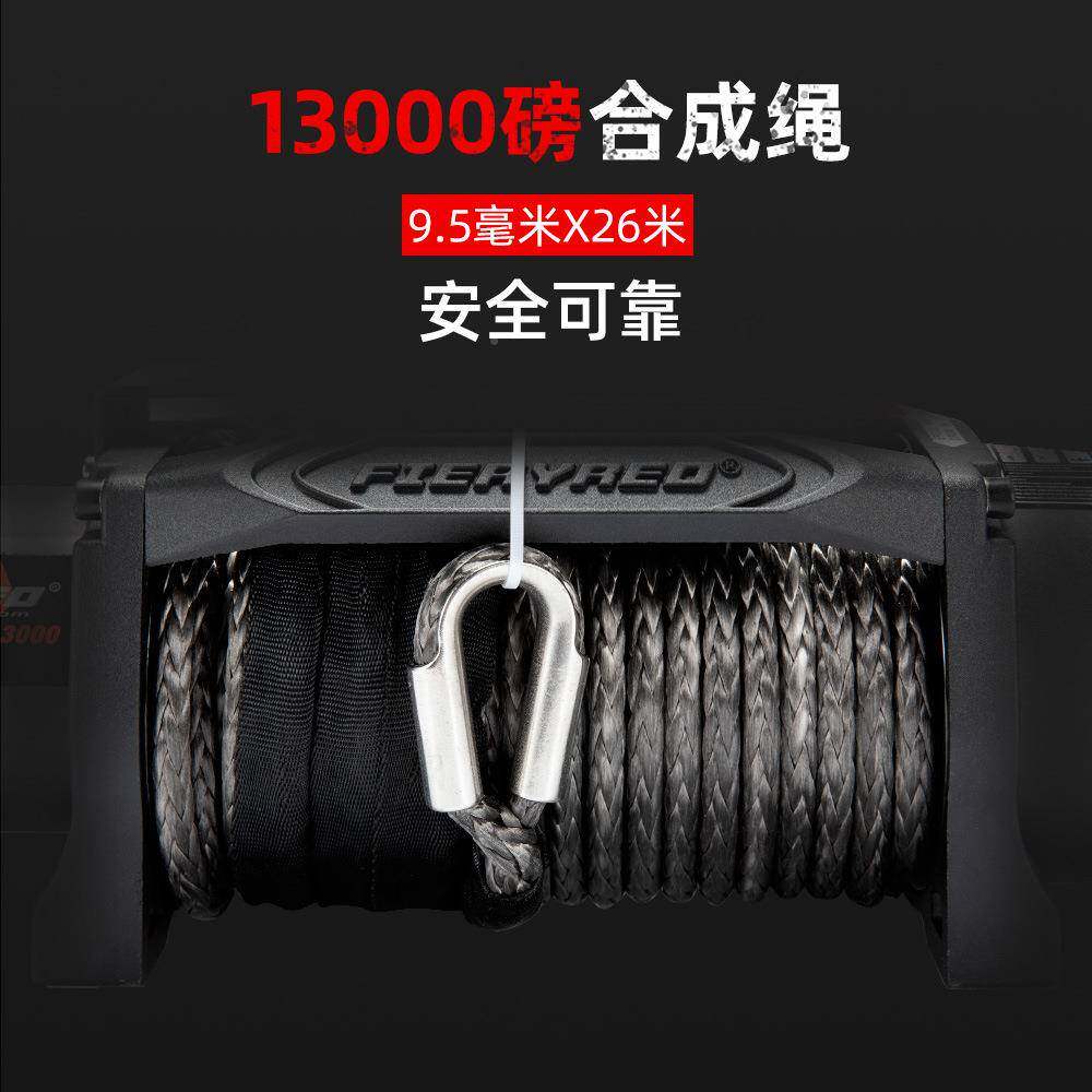 跨境销困13000磅1畅绞2V防水越野车自救脱374无线遥控合成绳电动