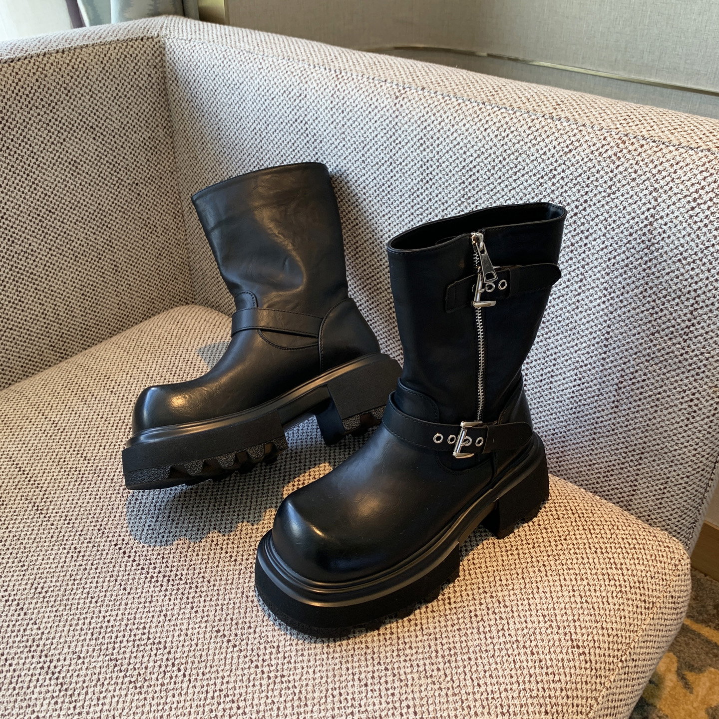 【TFM】马丁靴女2025年新款复古百搭皮带扣厚底粗跟英伦风短靴子
