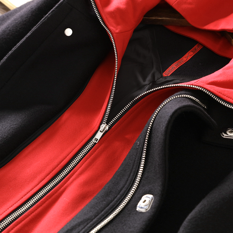 一线品牌撤柜冬季新款撞色时尚经典休闲连帽中长款毛呢大衣外套男