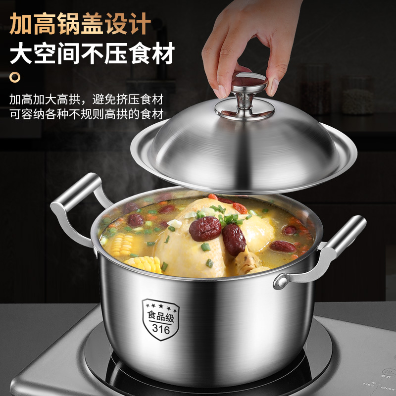 特厚加高汤锅316不锈钢家用煮粥蒸锅大容量炖锅一体防溢无涂层锅