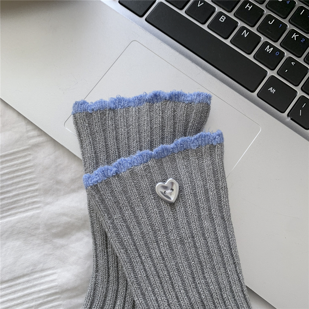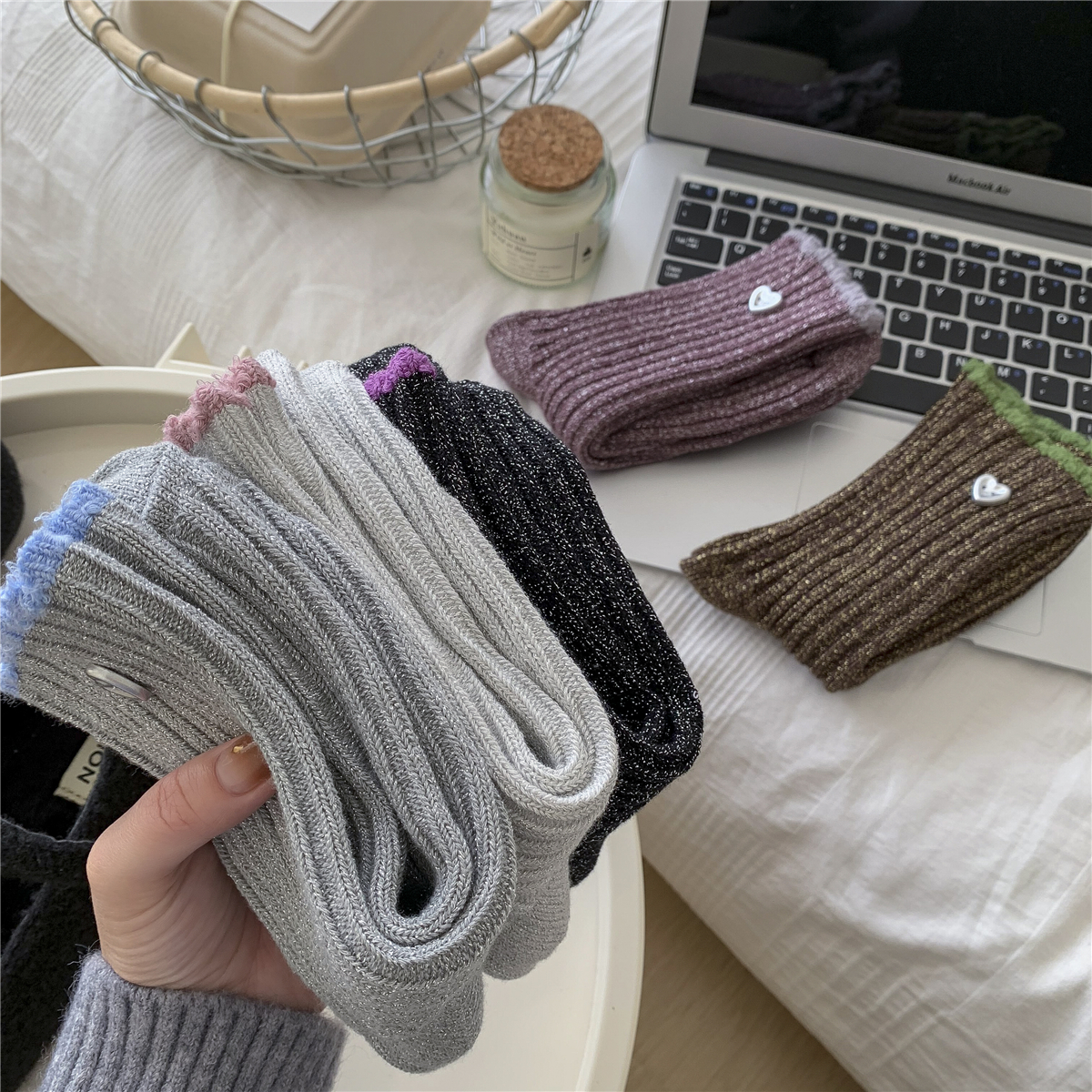秋冬粗线爱心装饰粗针女士金丝纯棉中筒袜 厚 全店5双包邮