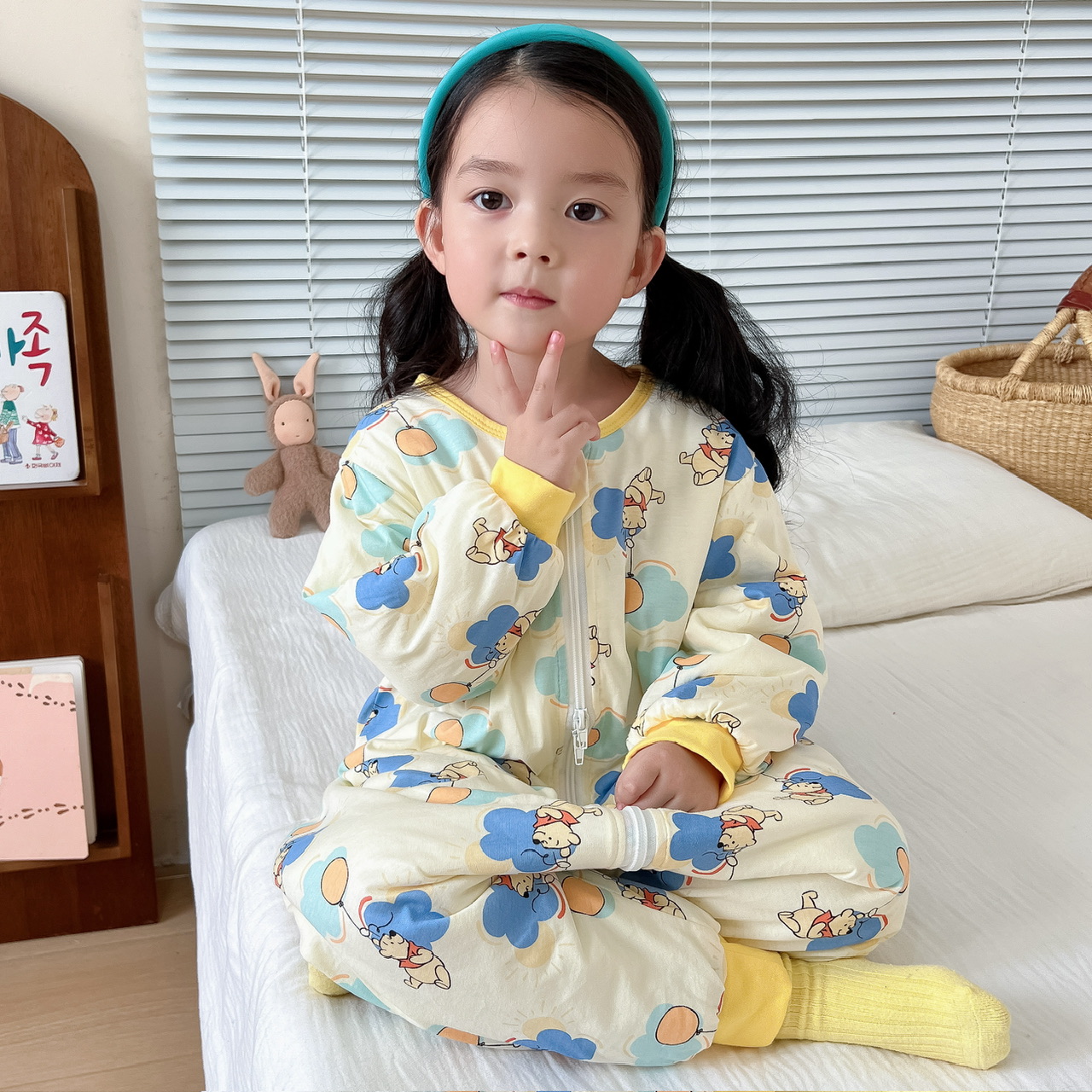 迪士尼宝宝睡袋秋冬新款纯棉加厚连体睡衣男女儿童夹棉分腿防踢被