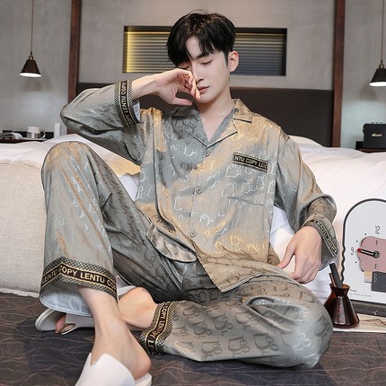 睡衣男春秋款2025新款冰丝男士夏季丝绸青少年大码薄款家居服套装