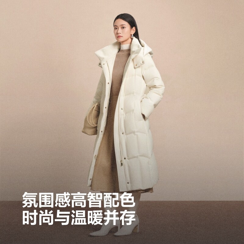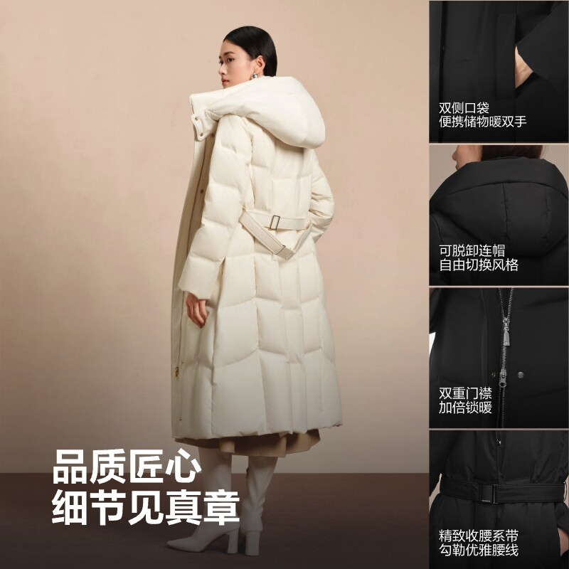 波司登奥莱女经典商务长款收腰设计舒适亲肤连帽立领高智感羽绒服