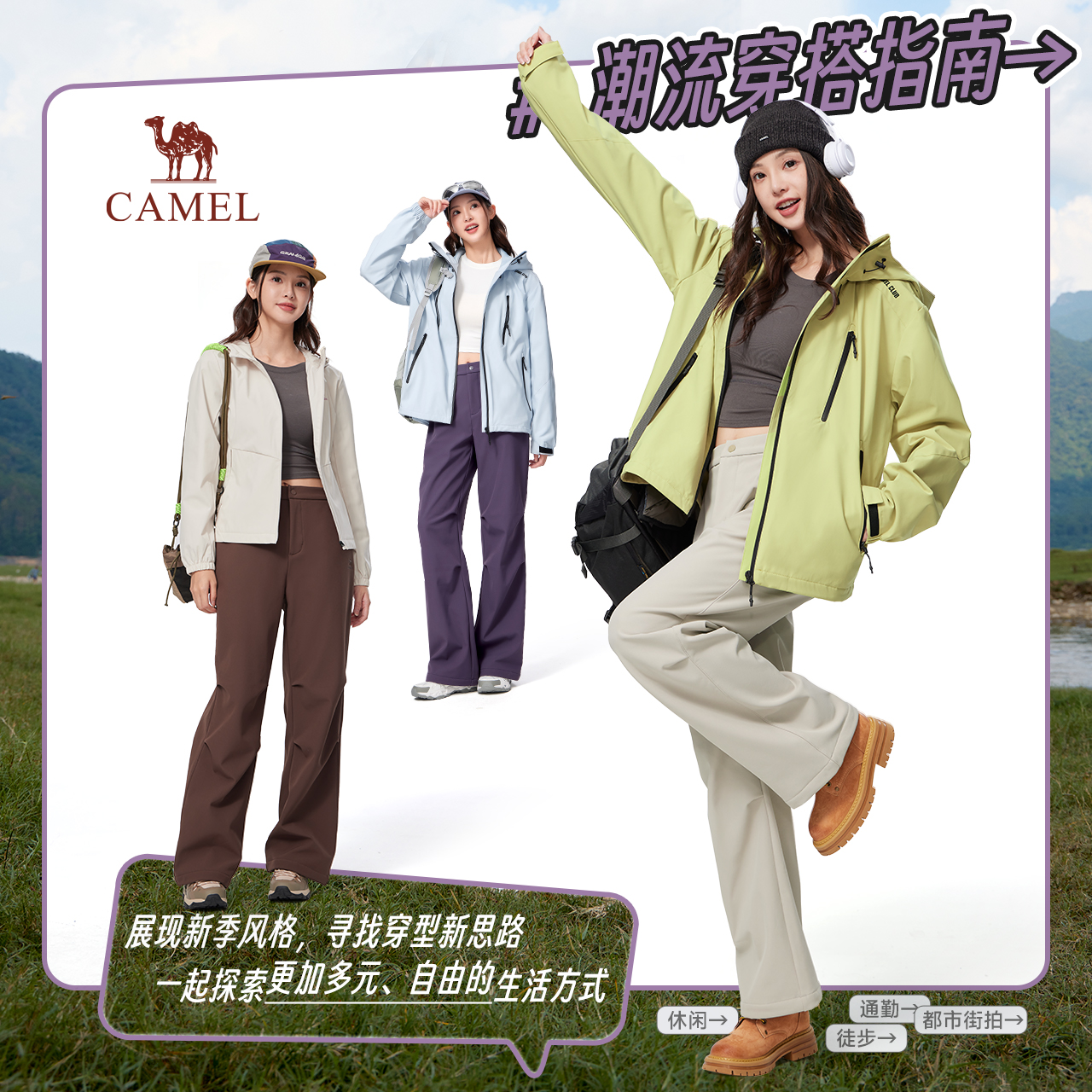 Camel骆驼运动女工装直筒伞兵裤宽松休闲户外防风防水保暖登山裤