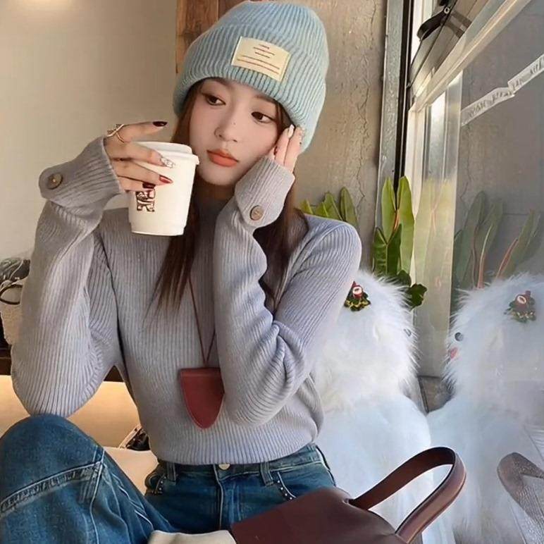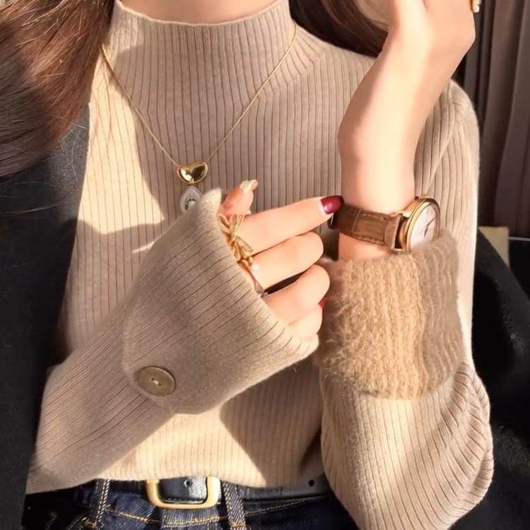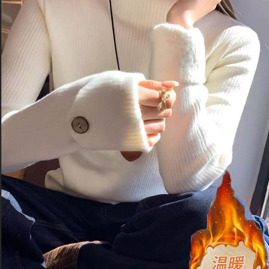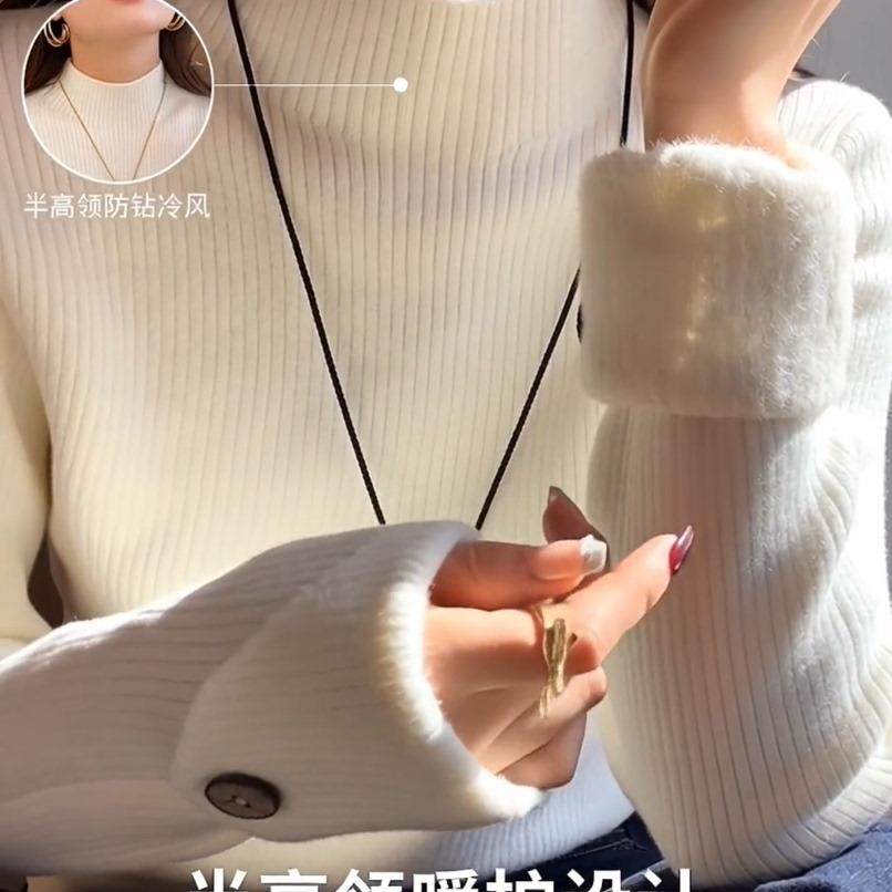 灰色半高领加绒加厚打底衫女内GPV搭0新25秋冬上款毛衣高2级感针