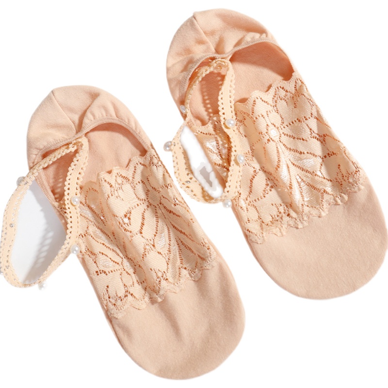 橙乙珍珠吊带船袜子女不掉跟蕾丝薄款纯色棉底浅口隐形短袜春夏季