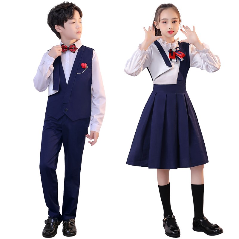儿童演出服校园风中小学生朗诵大合唱表演服装藏青男女童套装长袖
