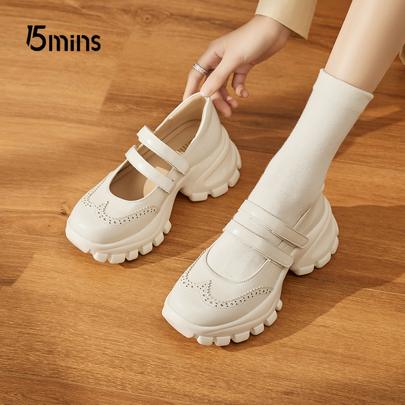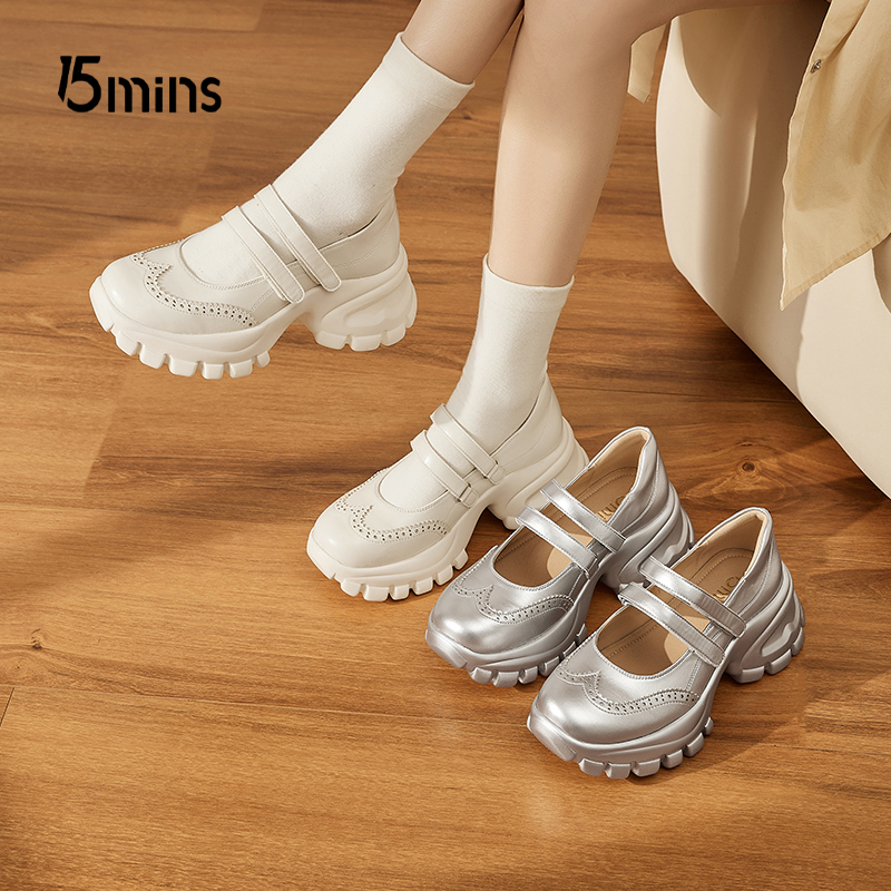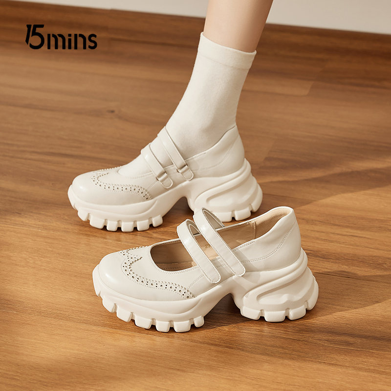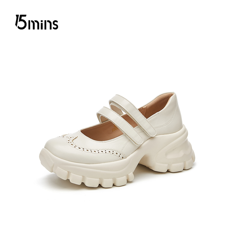 15mins英伦风小皮鞋女春季2025年新款高跟单鞋一脚蹬白色玛丽珍鞋