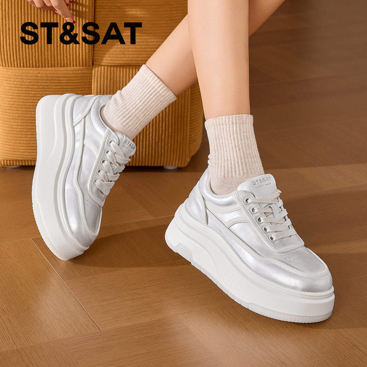 星期六松糕厚底增高小白鞋女2025新款春季爆款小个子休闲运动板鞋