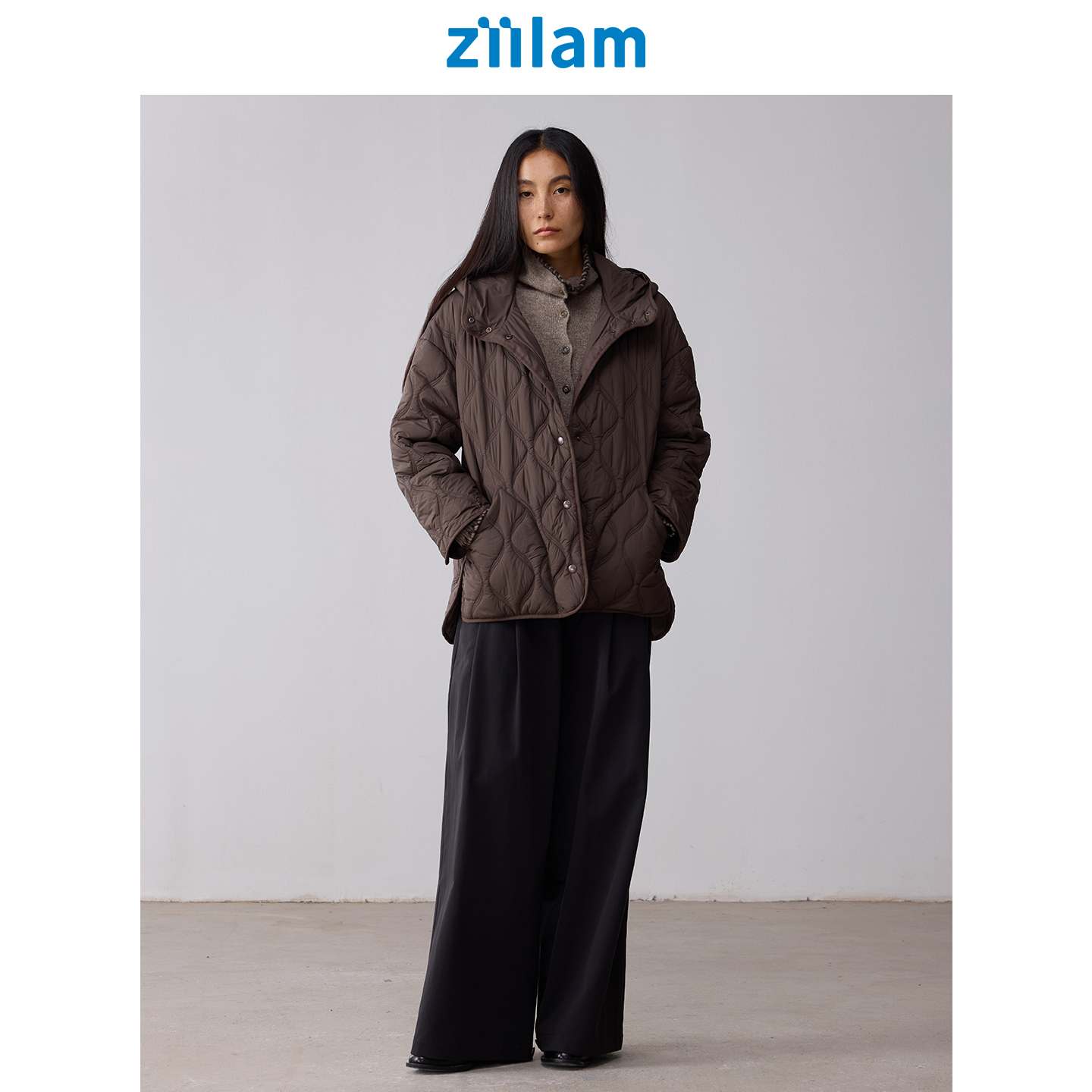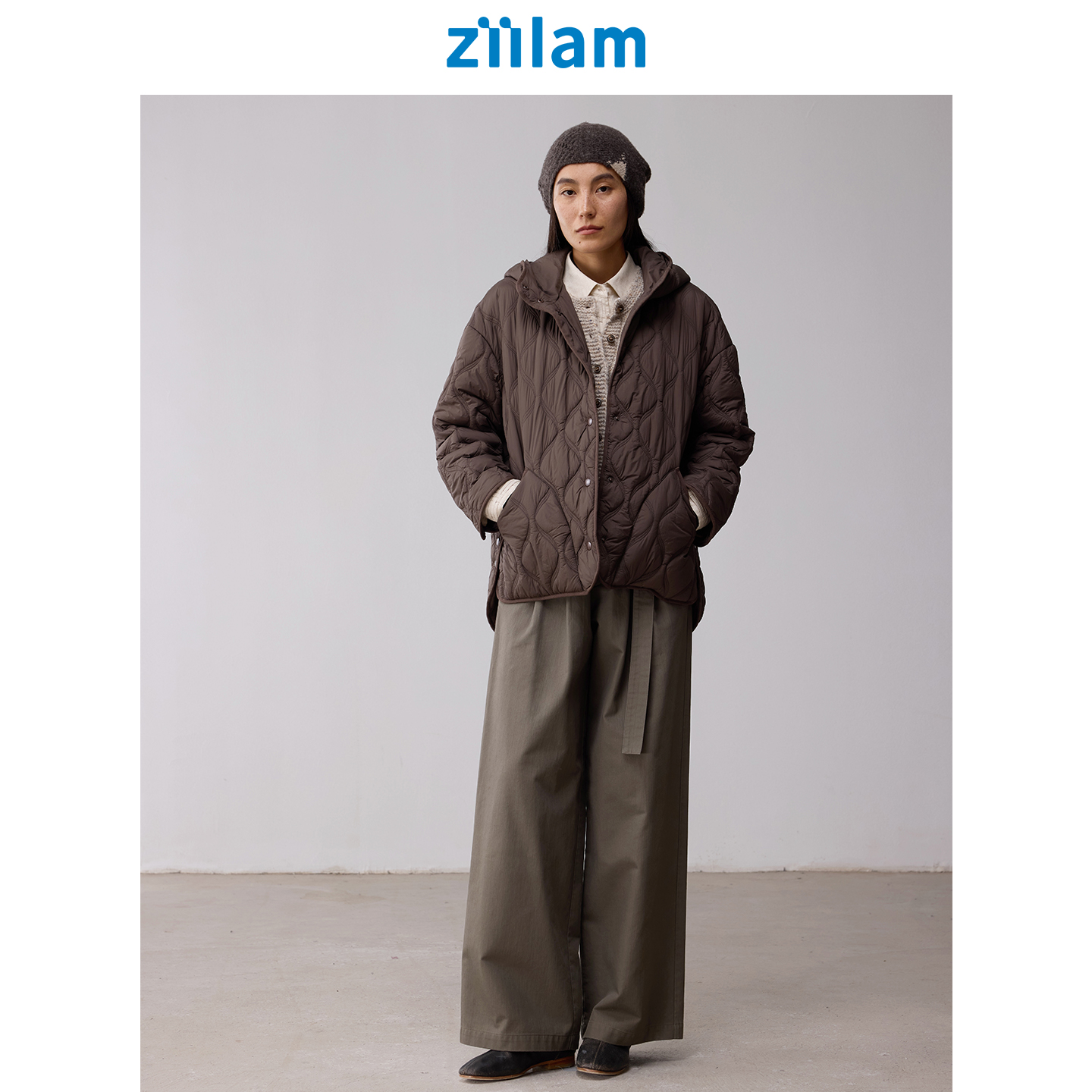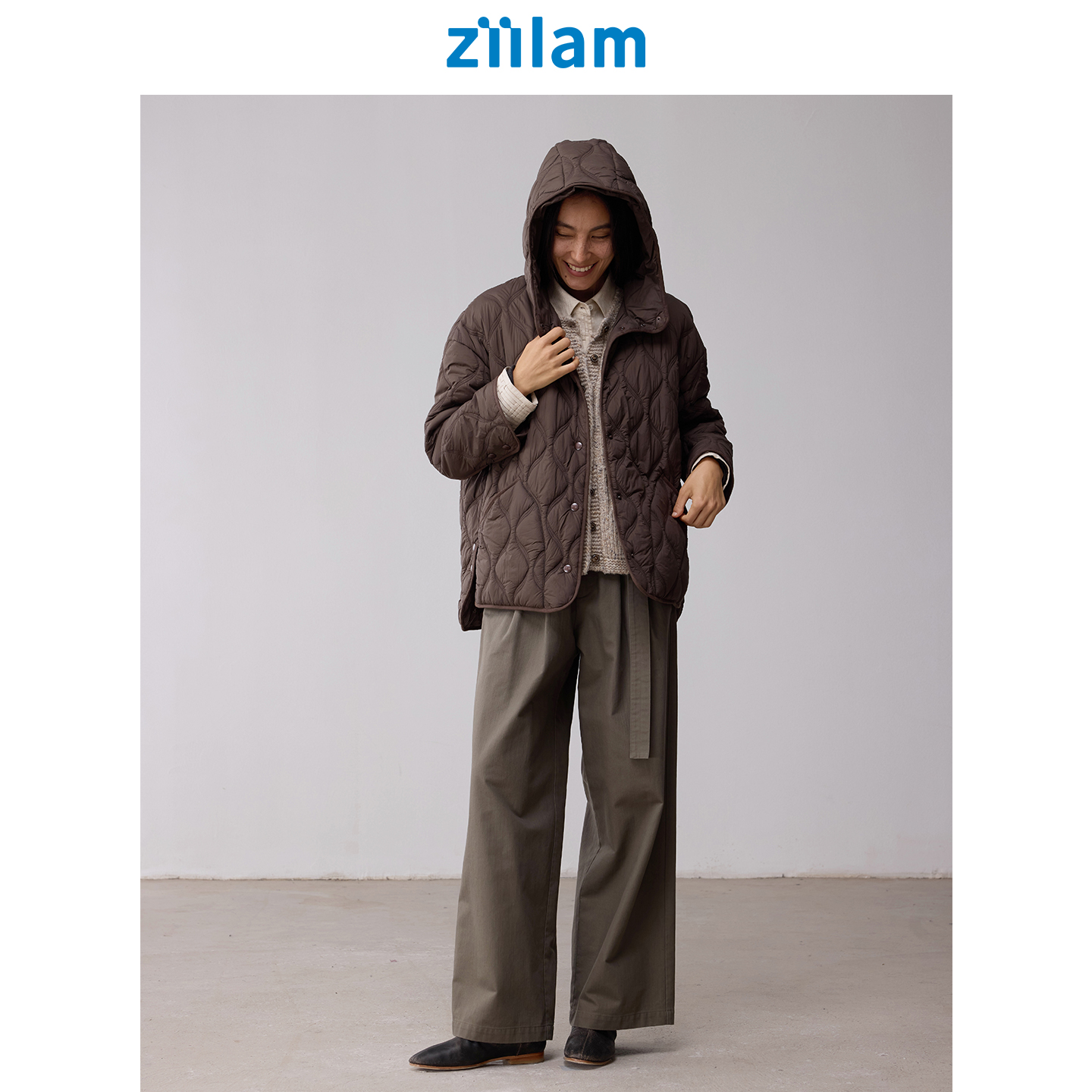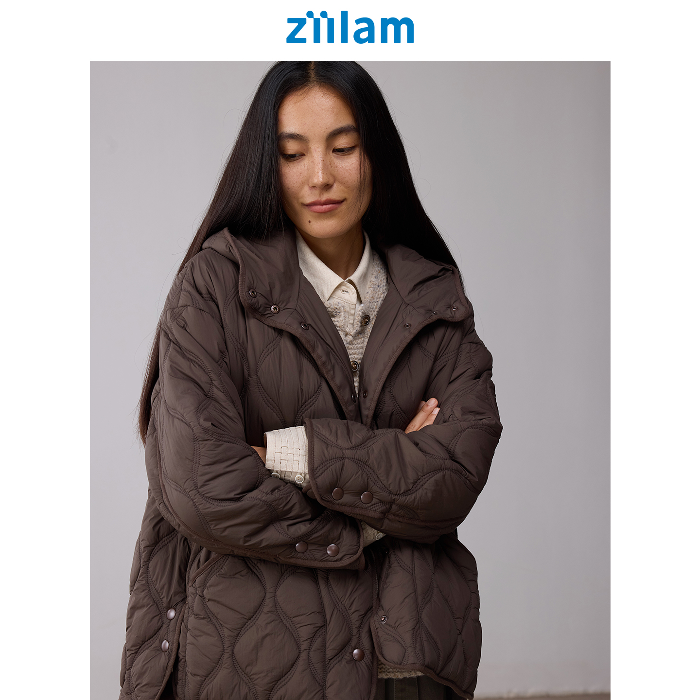 ziilam枝蓝 连帽绗缝棉服复古休闲微宽松松弛感秋冬保暖外套女