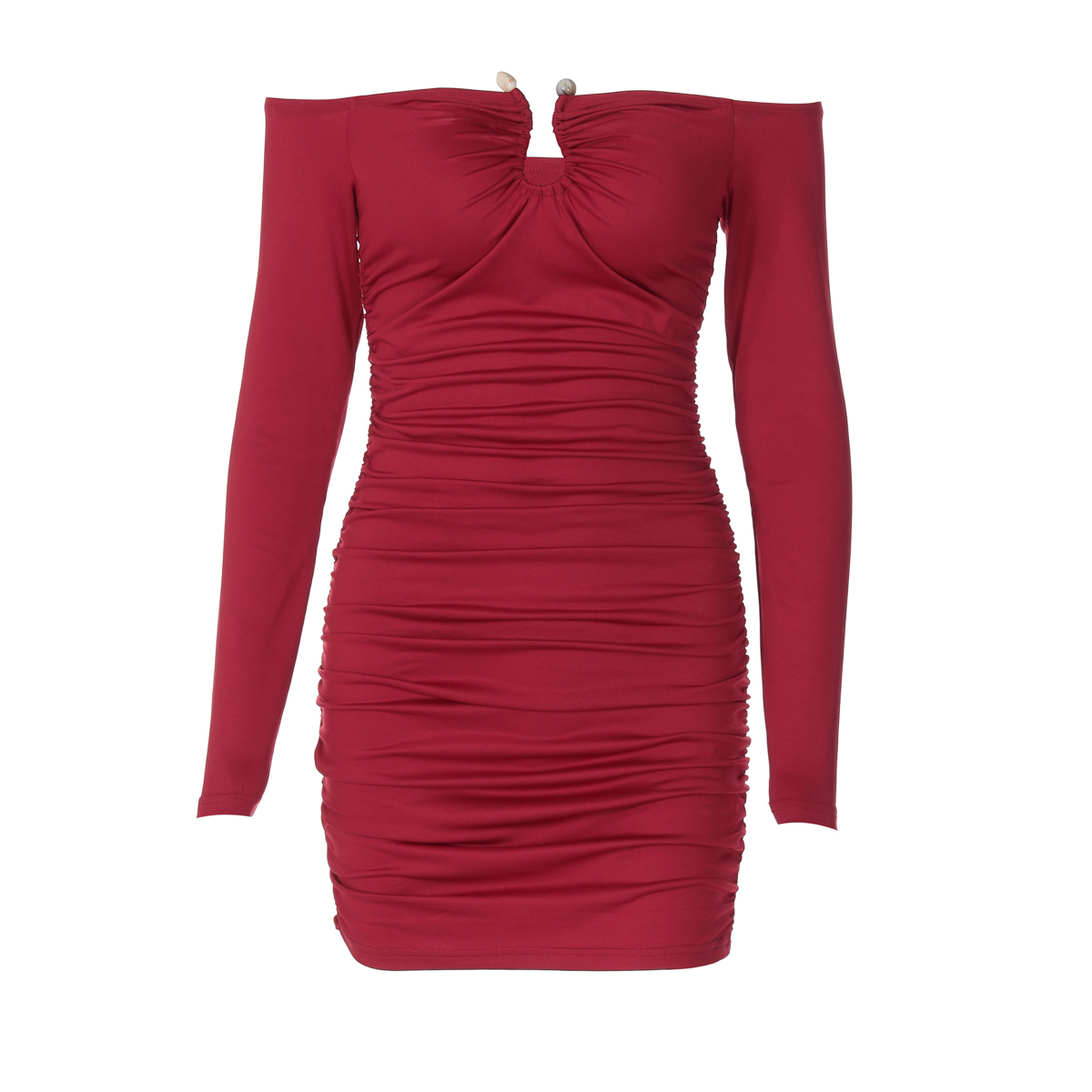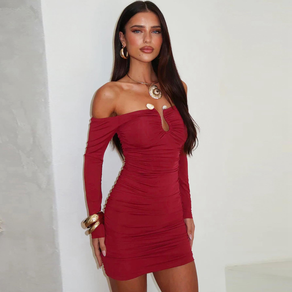 纯欲辣妹一字肩包臀裙长袖连衣裙