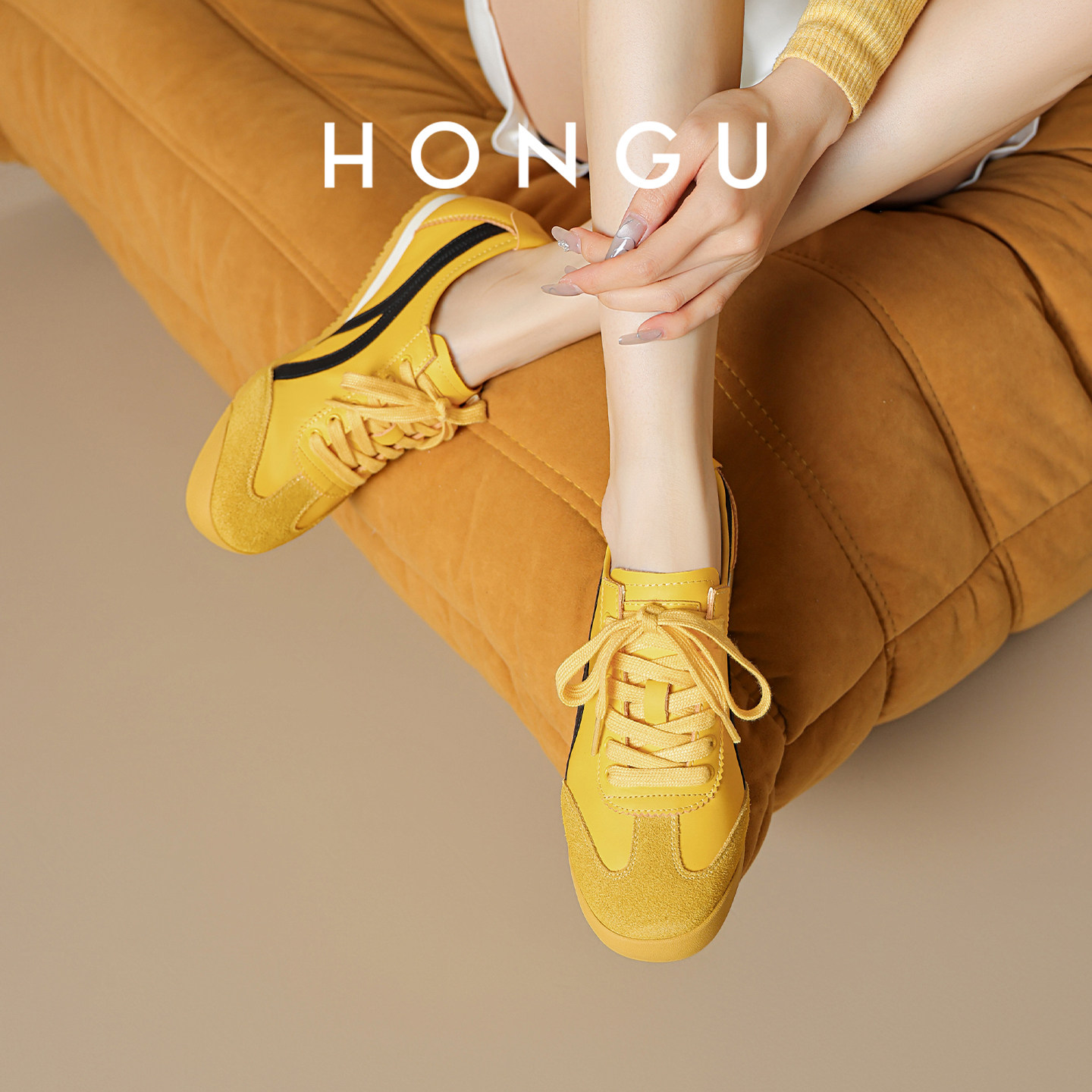 【柠檬黑巧】红谷复古内增高德训鞋女2025秋冬新款软底拼色休闲鞋