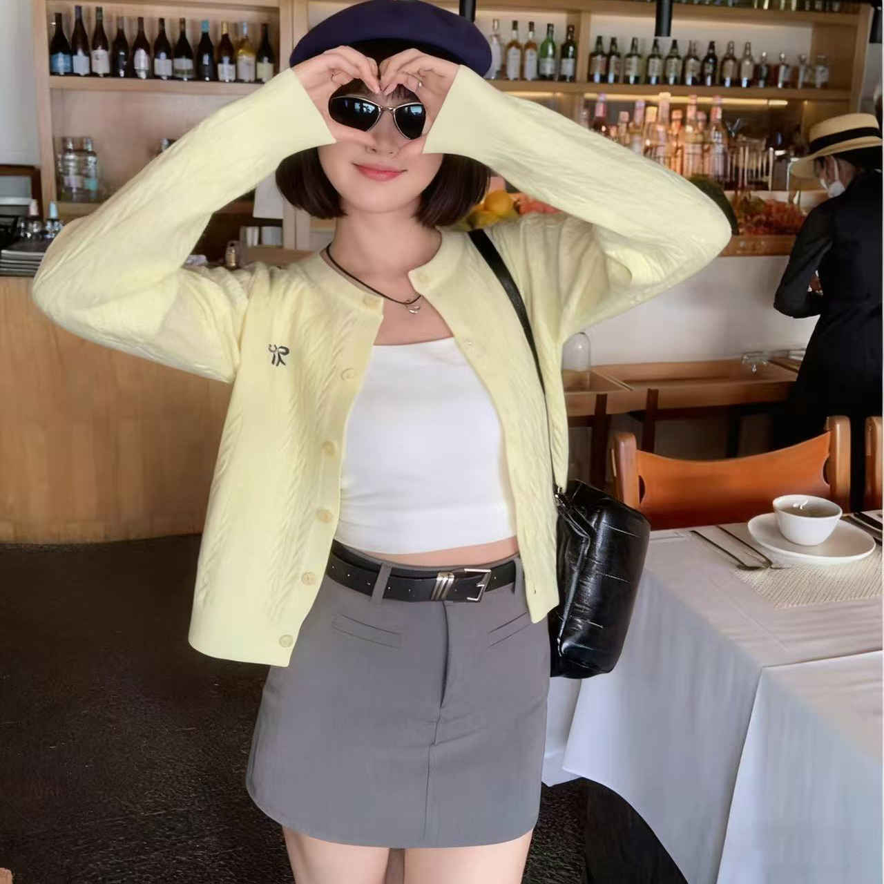 灰色开衫女2025针织外套高级感春秋麻花毛衣高级感刺绣短款上衣