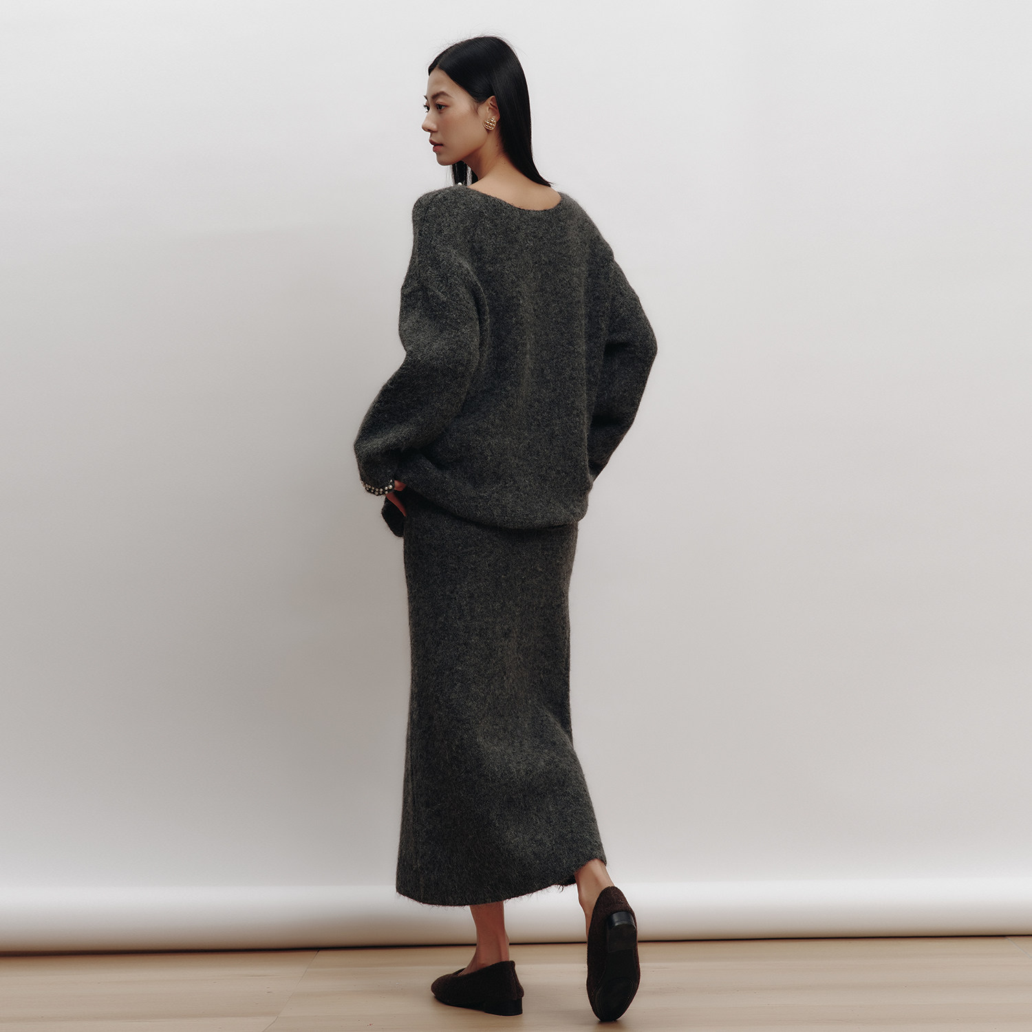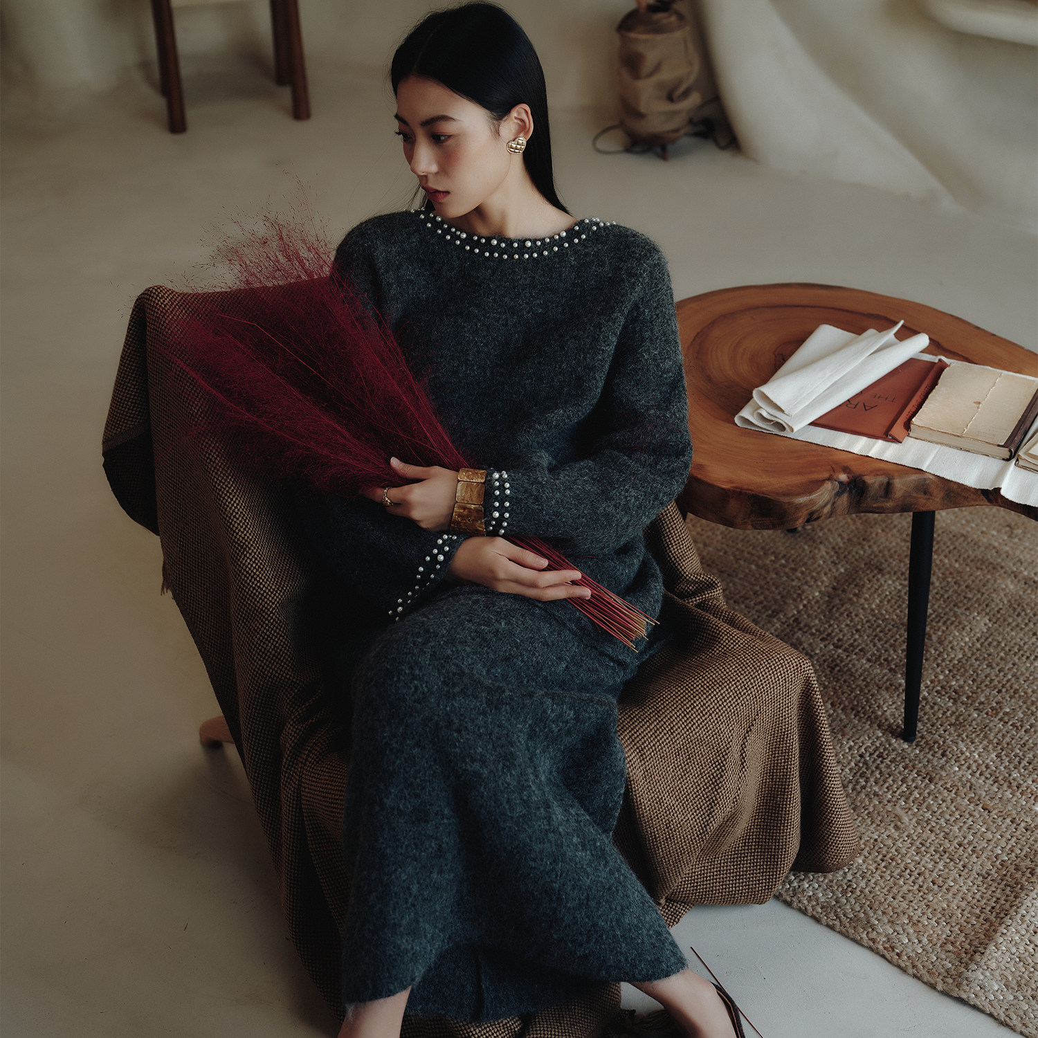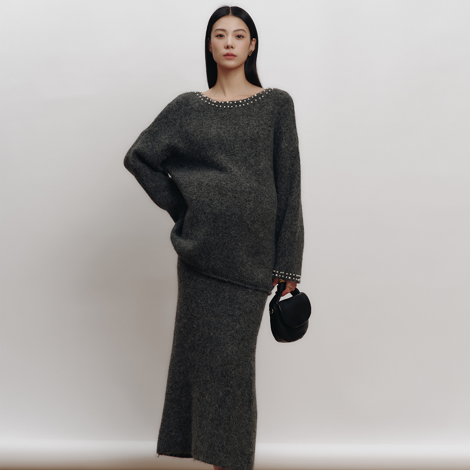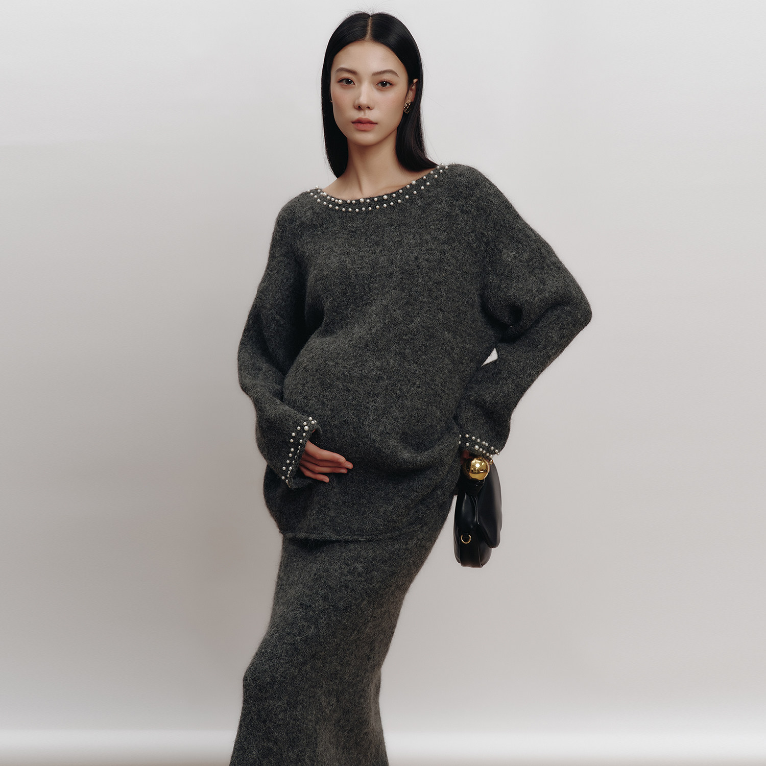 SELLYNEAR孕妈高级感穿搭套装冬季新款时尚珍珠毛衣半身裙两件套