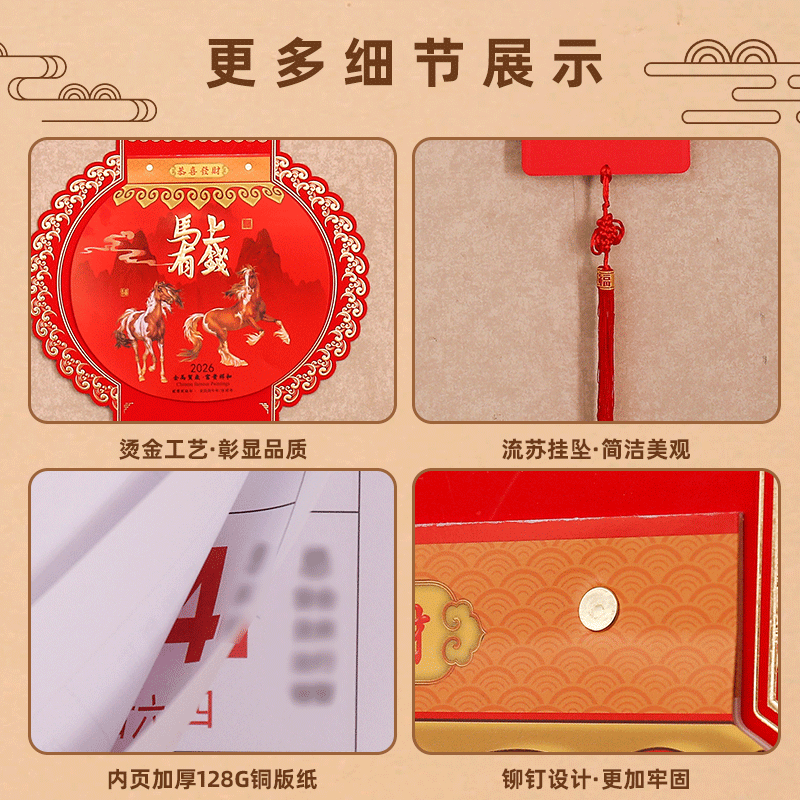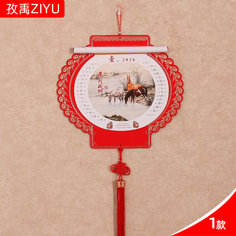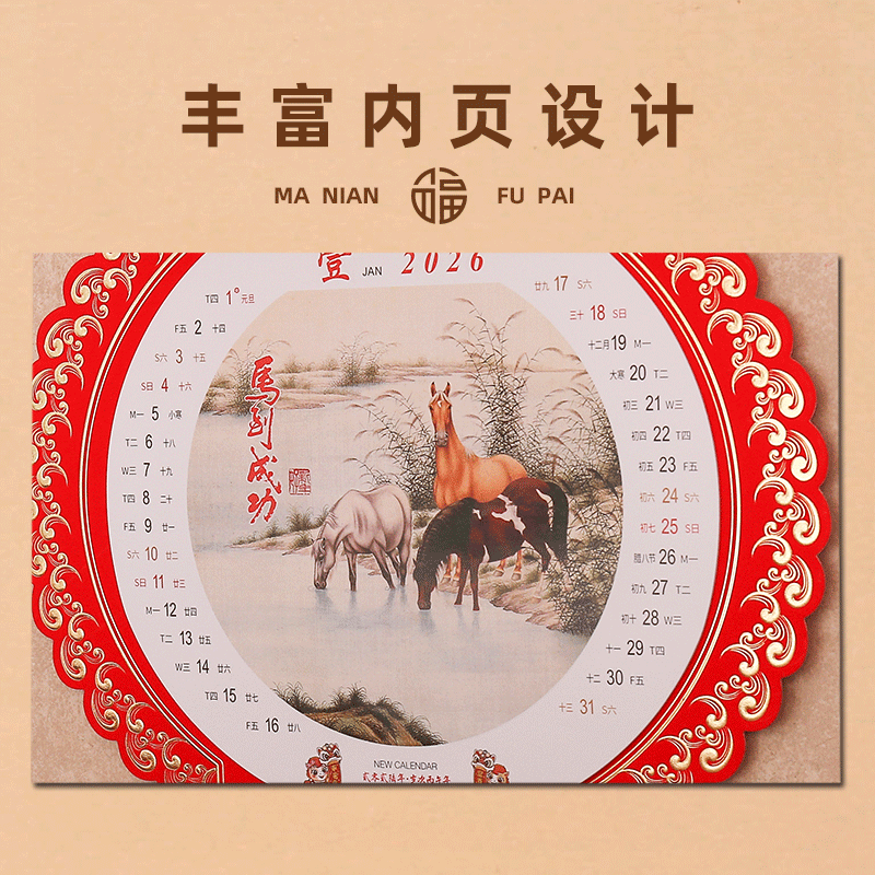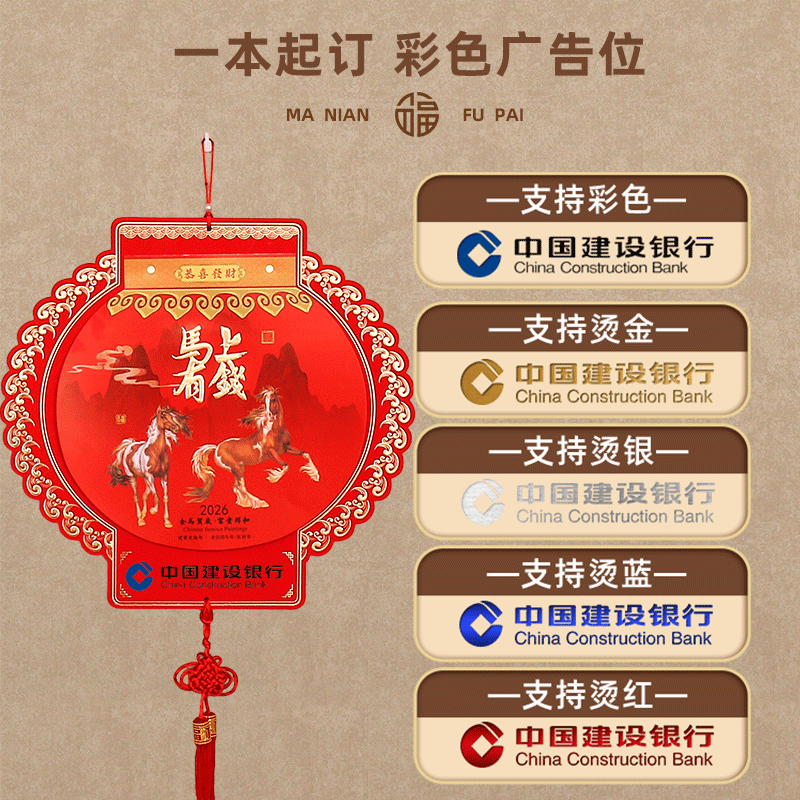 挂历订制2026年四开灯笼形挂历马年公司企业logo定制宣传烫金印刷专版订制R004