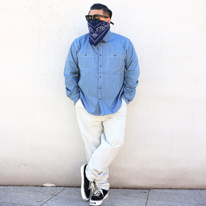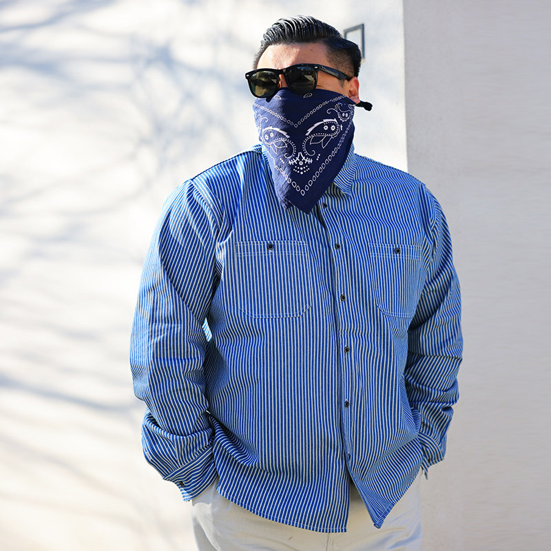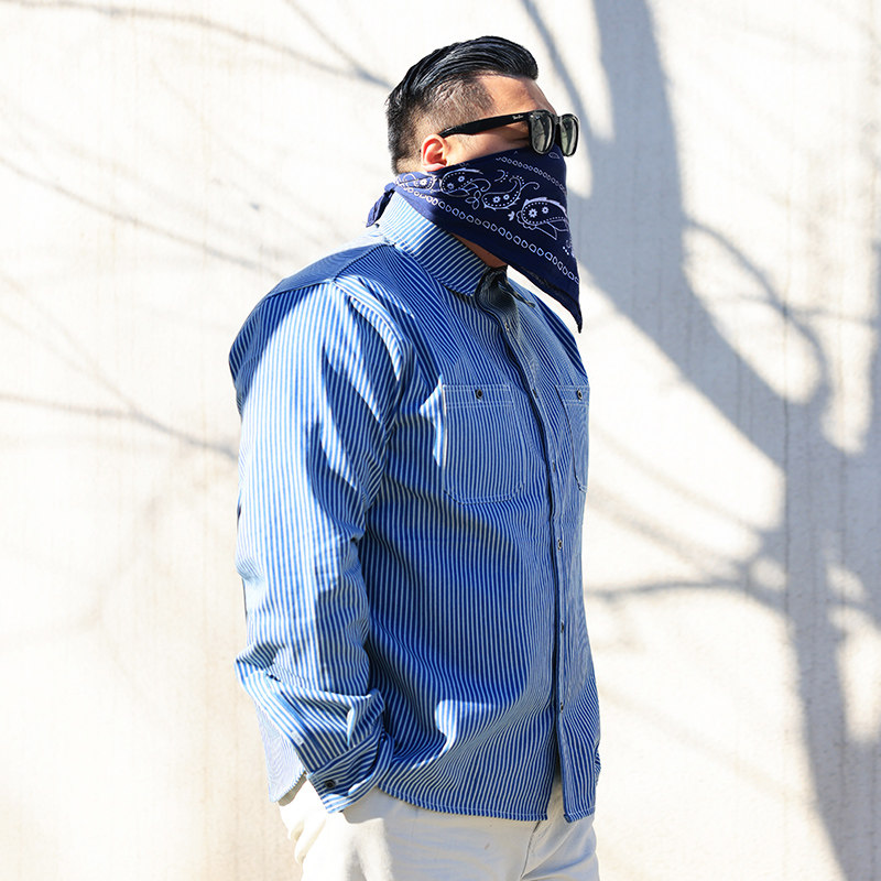 核爆炸阿美咔叽复古蓝白条纹衬衫