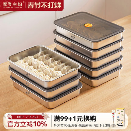摩登主妇不锈钢饺子冷冻收纳盒食品级冰箱专用馄饨水饺速冻保鲜盒