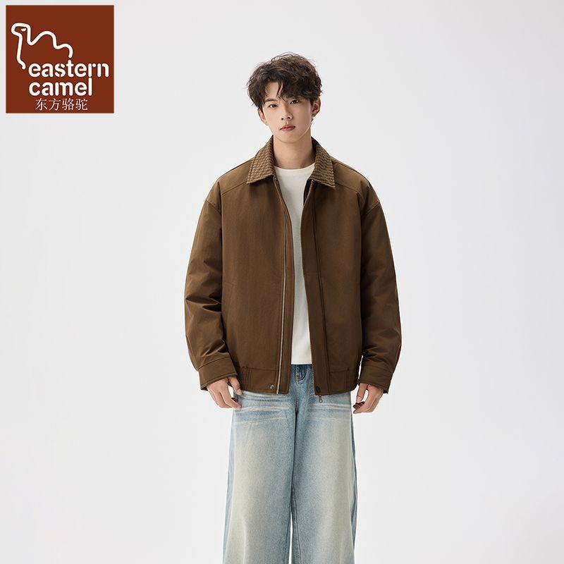 东方骆驼防寒翻领羽绒服男冬季2025新款宽松加厚保暖鸭绒夹克外套
