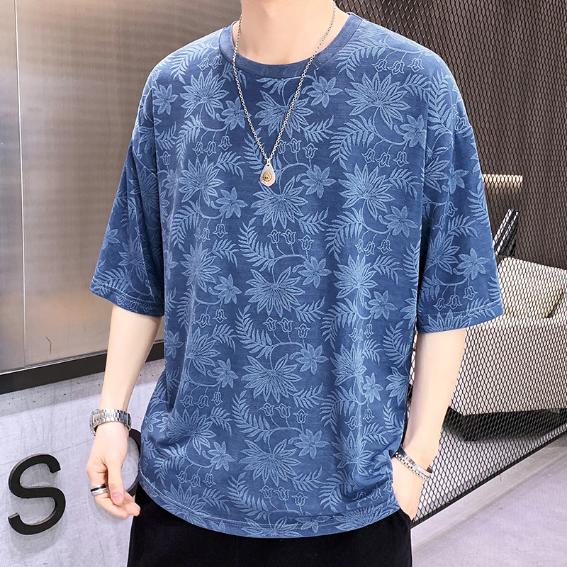 短袖t恤男士2025新款打底衫韩版宽松圆领体恤衫冰丝薄款潮牌个性