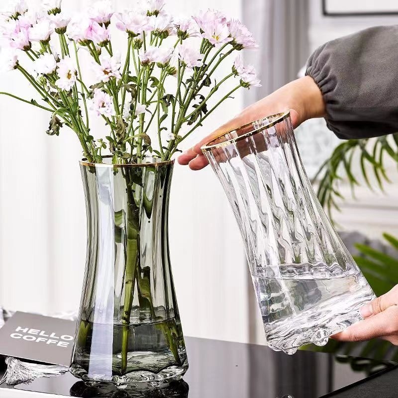 高级简约轻奢加厚ins风透明玻璃花瓶水养富贵竹鲜花插花客厅摆件