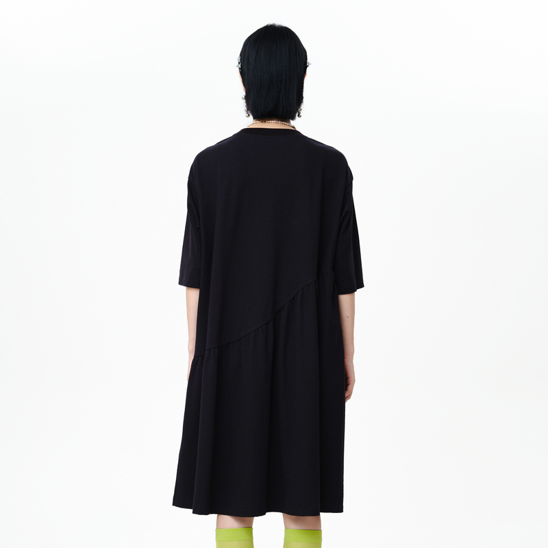 MOVEUP幻走2025春季新款.FUN系列趣味印花抽褶设计师针织连衣裙