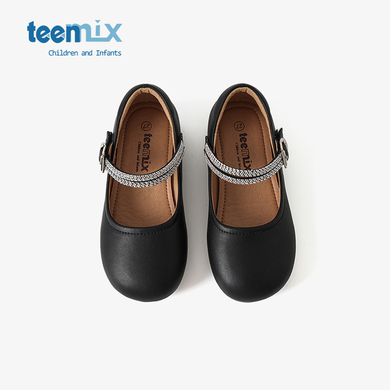 天美意2025年新款春夏季儿童女童舞蹈宴会宝宝公主黑色白色小皮鞋